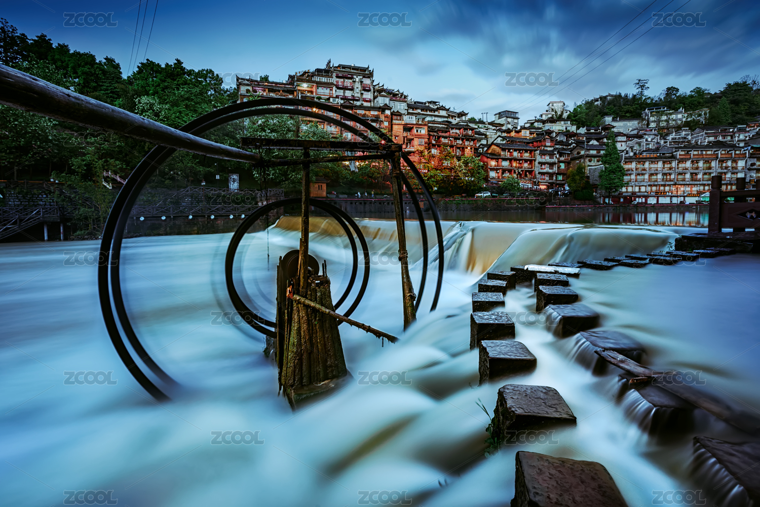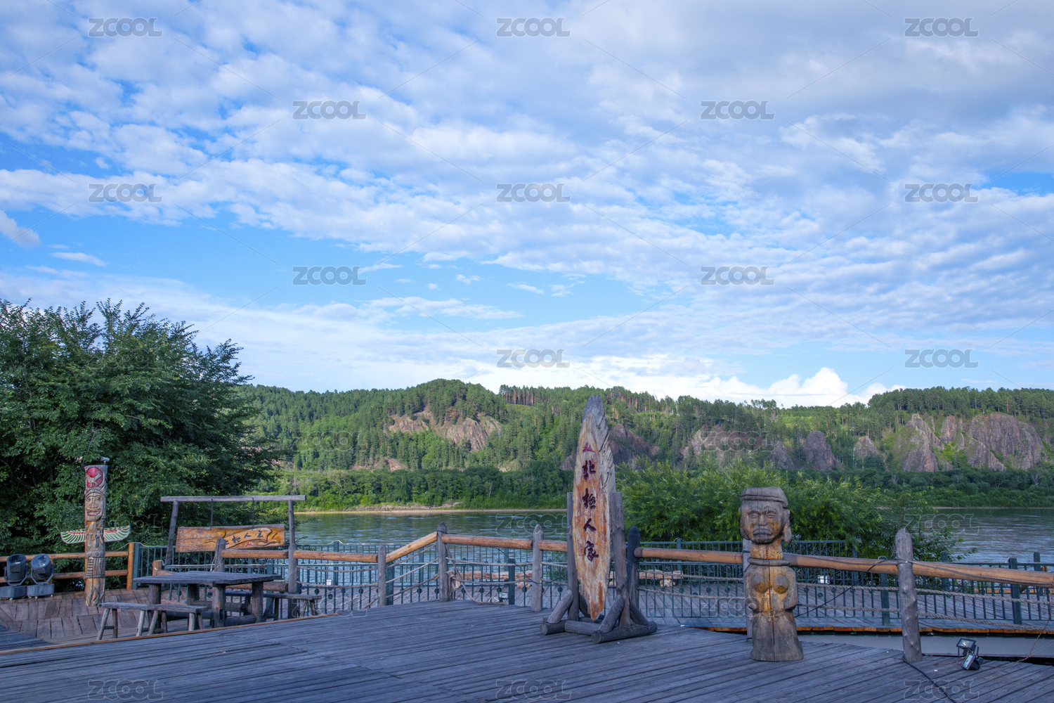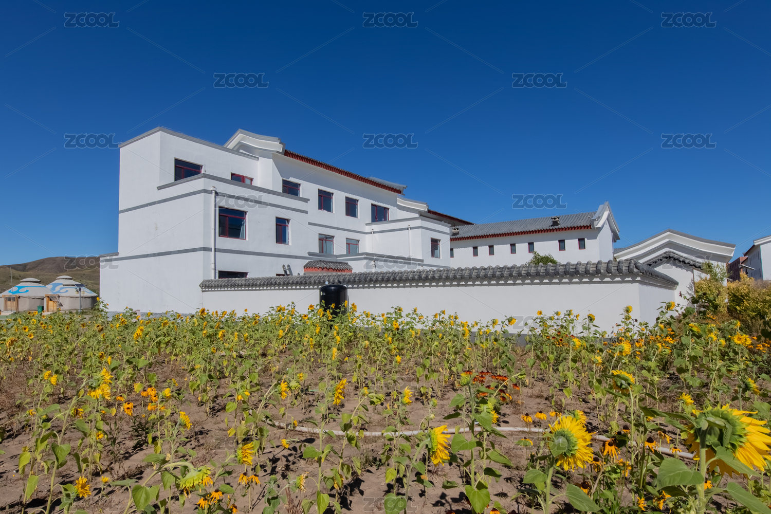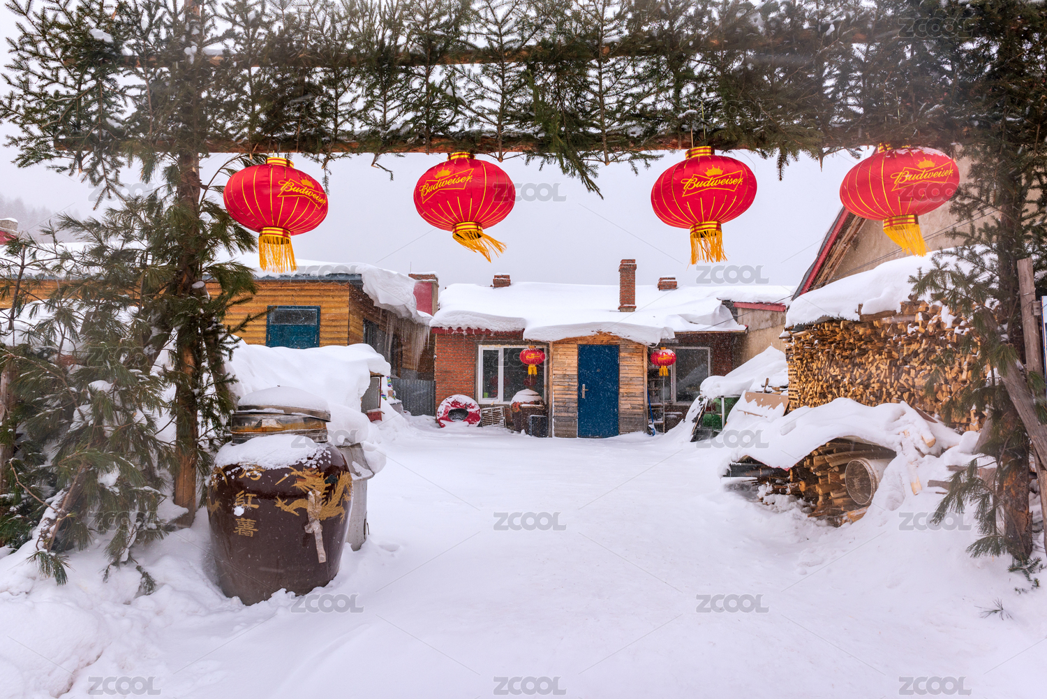 中国河北省丰宁县夜晚坝上农家客栈园林建筑