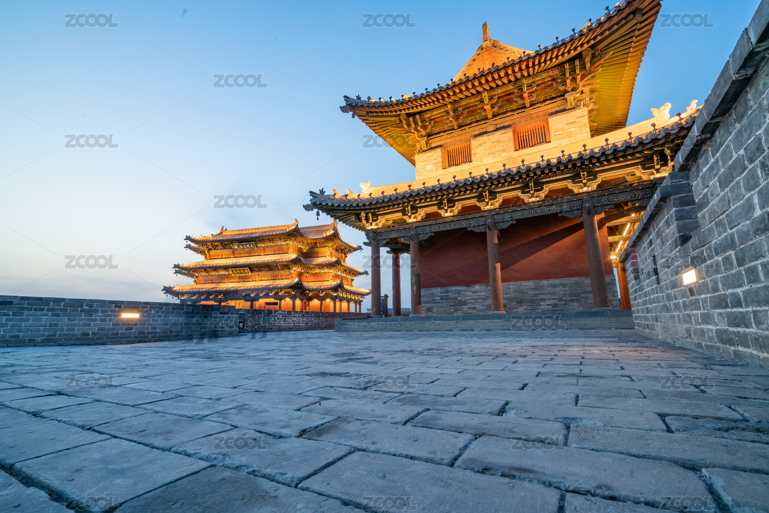 山西大同古城墙永泰门广场景观风光