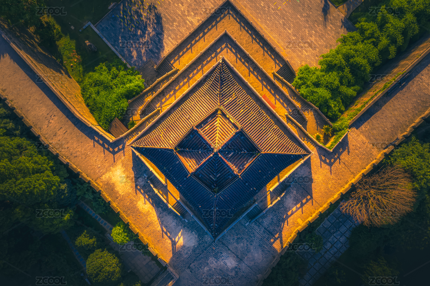 中国山西省平遥县暮色彩云古城角楼园林建筑