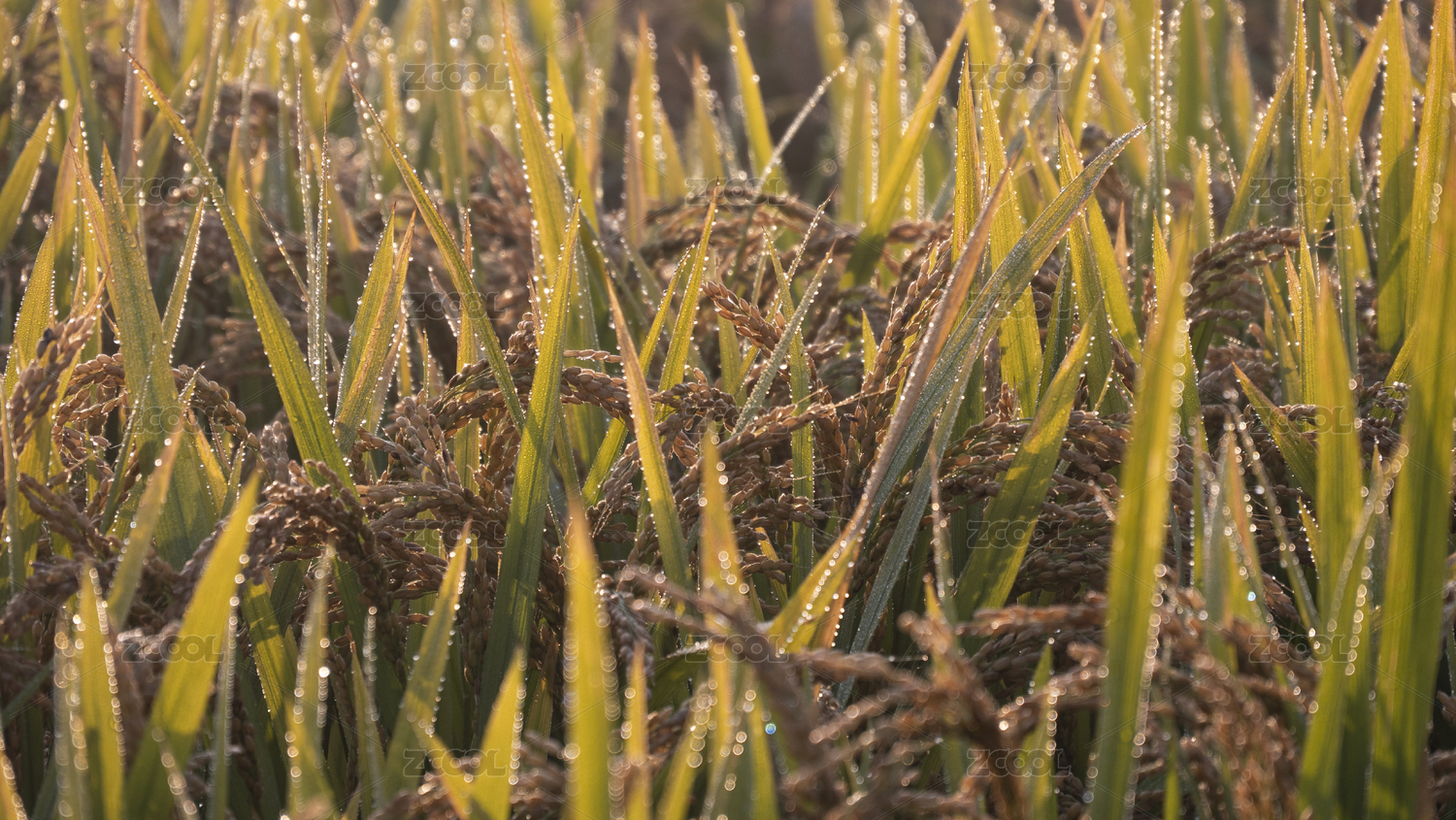 夏天水稻稻苗和露水