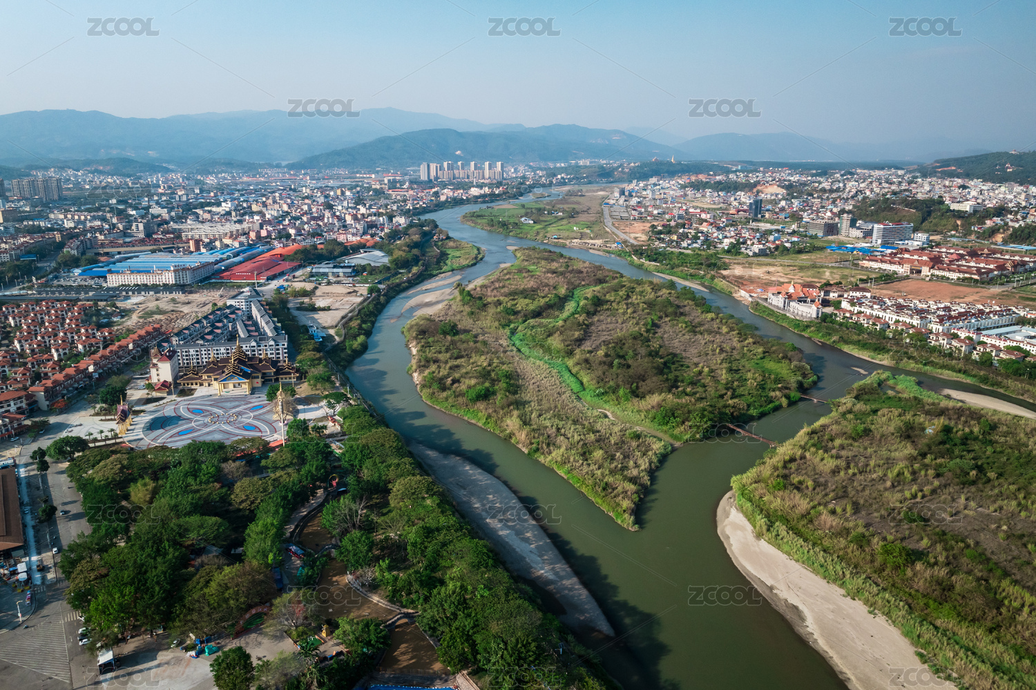 云南德宏瑞丽市姐告航拍瑞丽江广场城市风光
