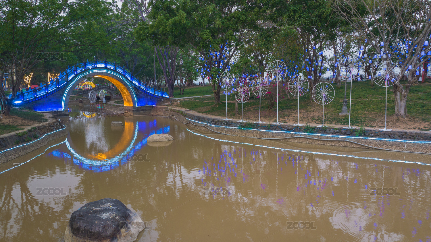 夜色下的云南边陲小城瑞丽市瑞丽江广场灯光