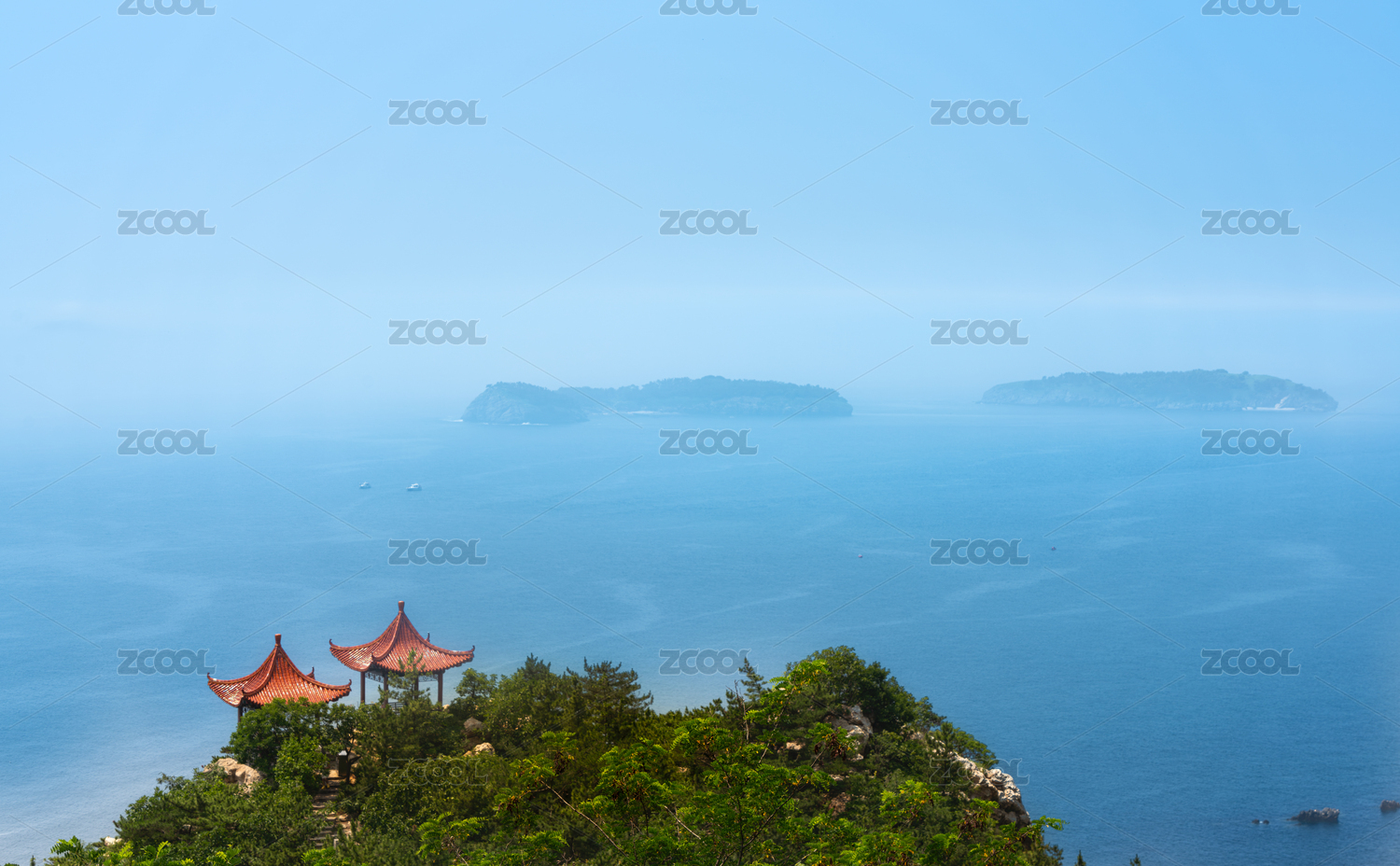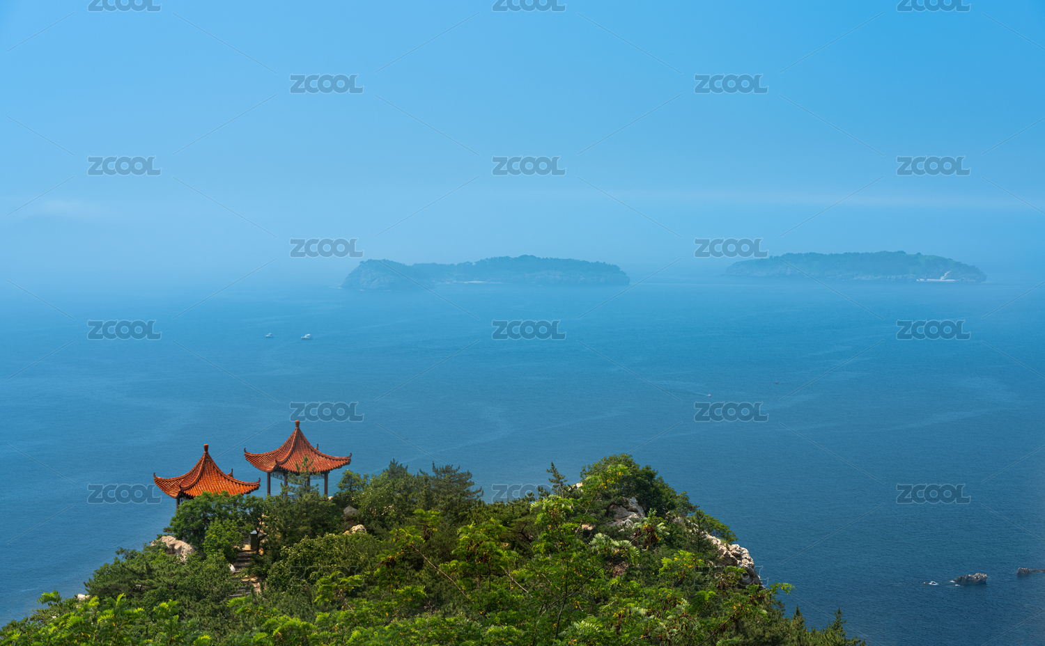 中国大连燕窝岭风景区观海亭遥望西大连岛