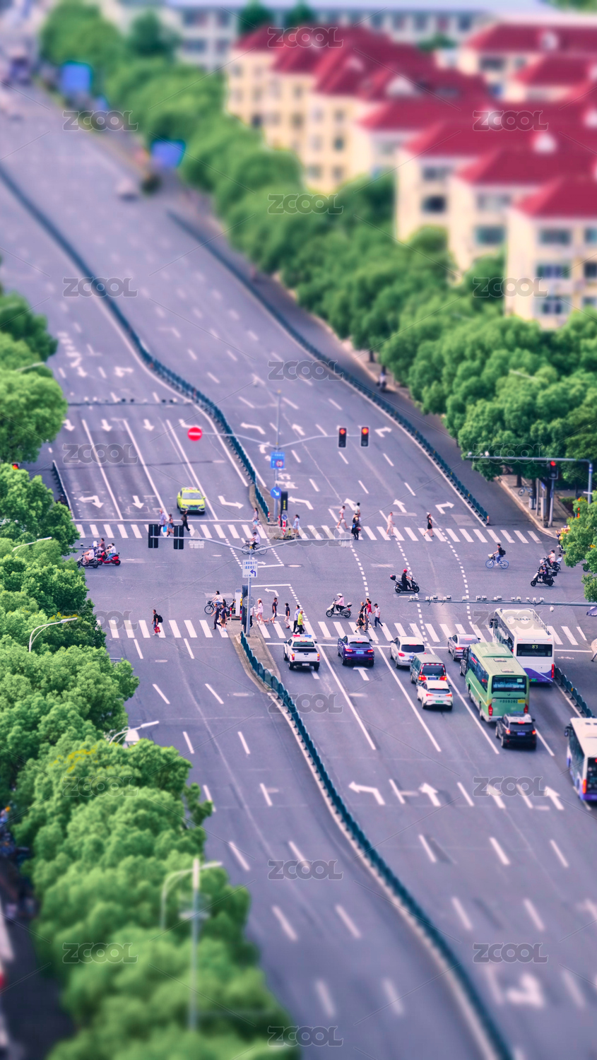 城市街道交通路口俯瞰微距