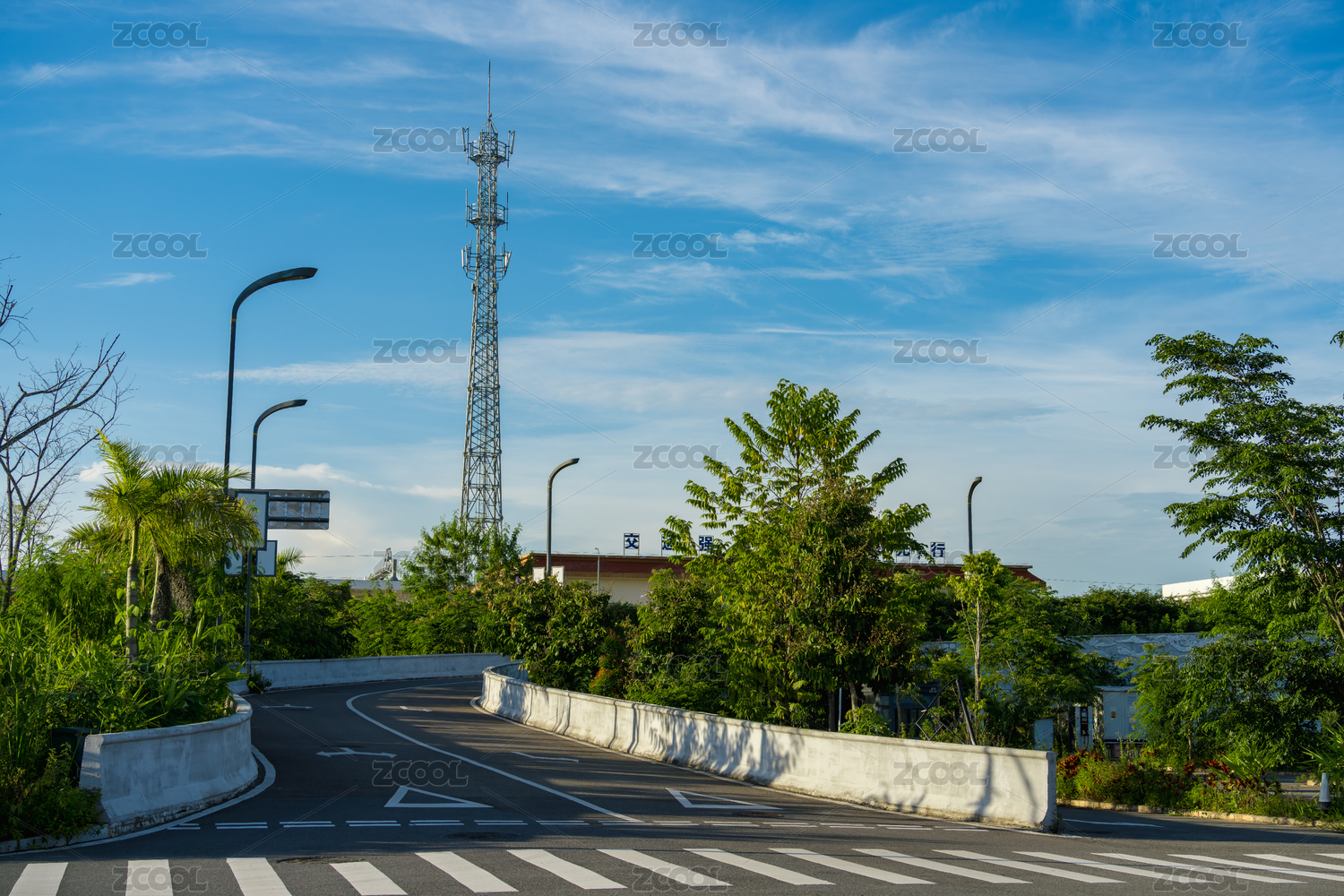 有信号塔的道路风景