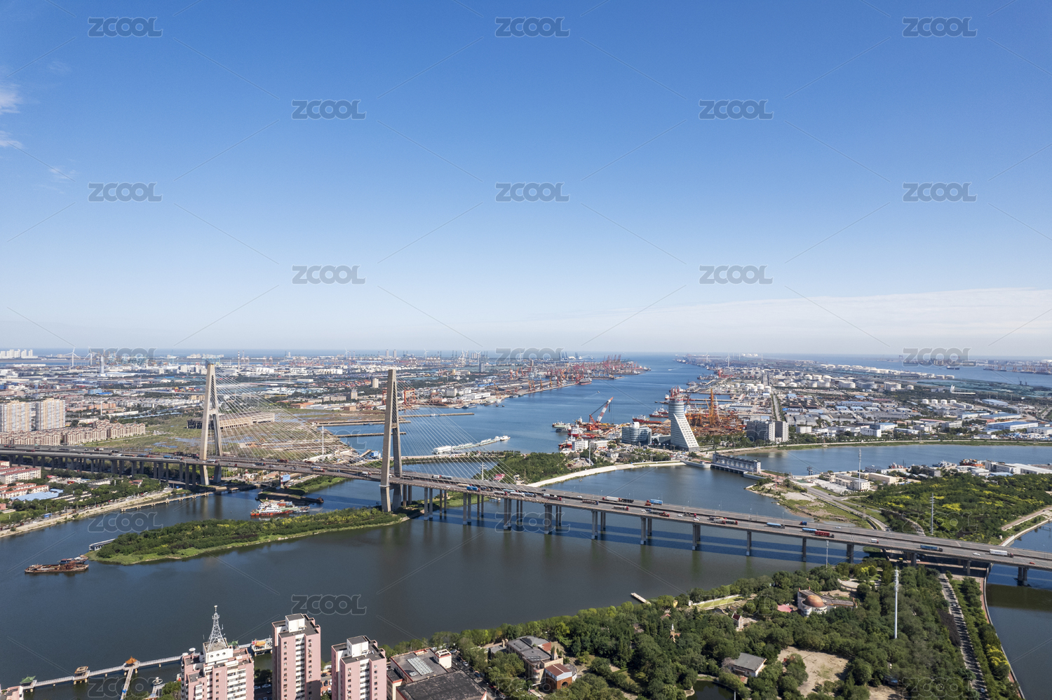 天津港滨海大桥交通运输城市风光