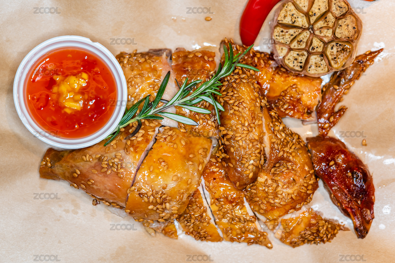 一盘亚麻籽脆皮烧鸡