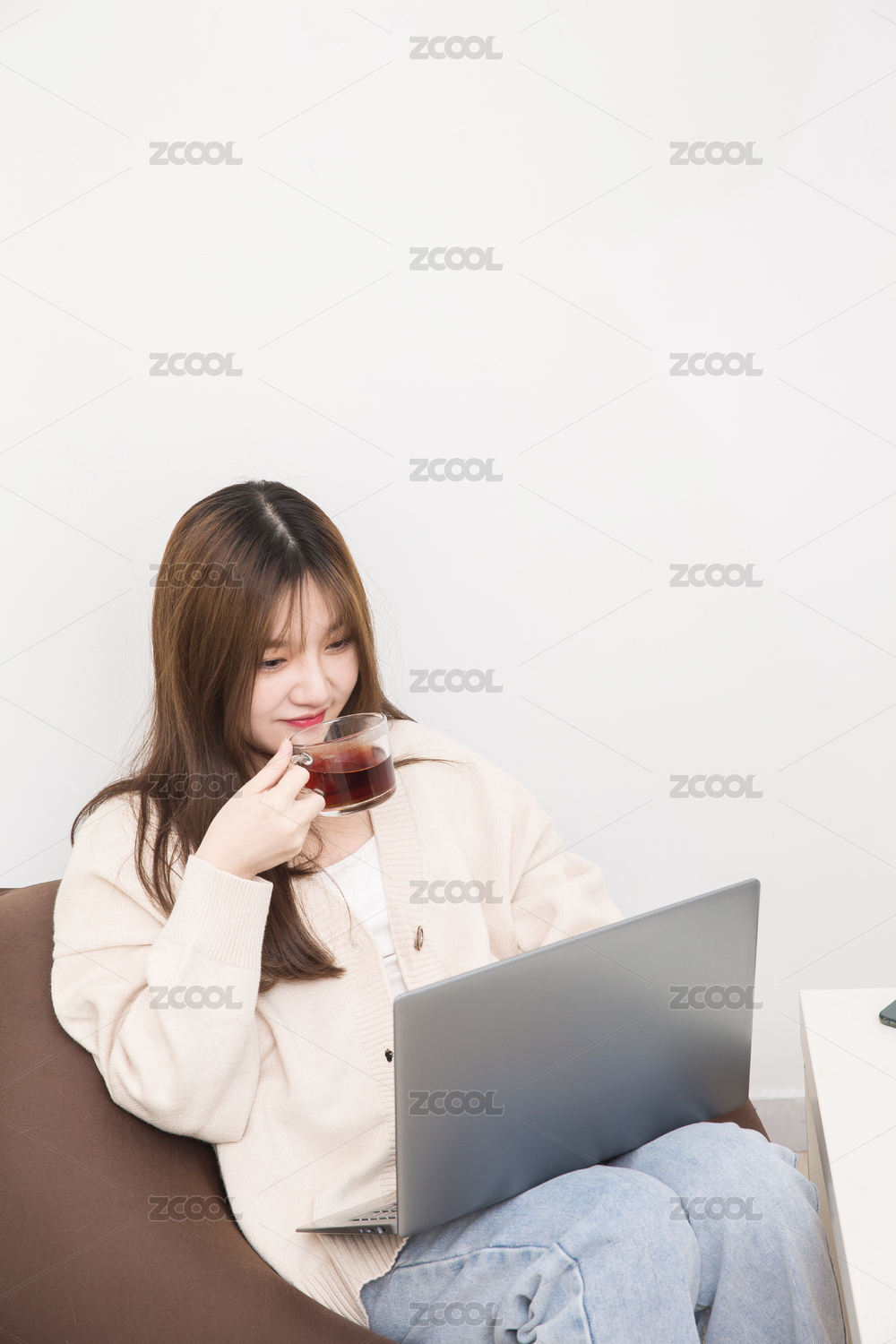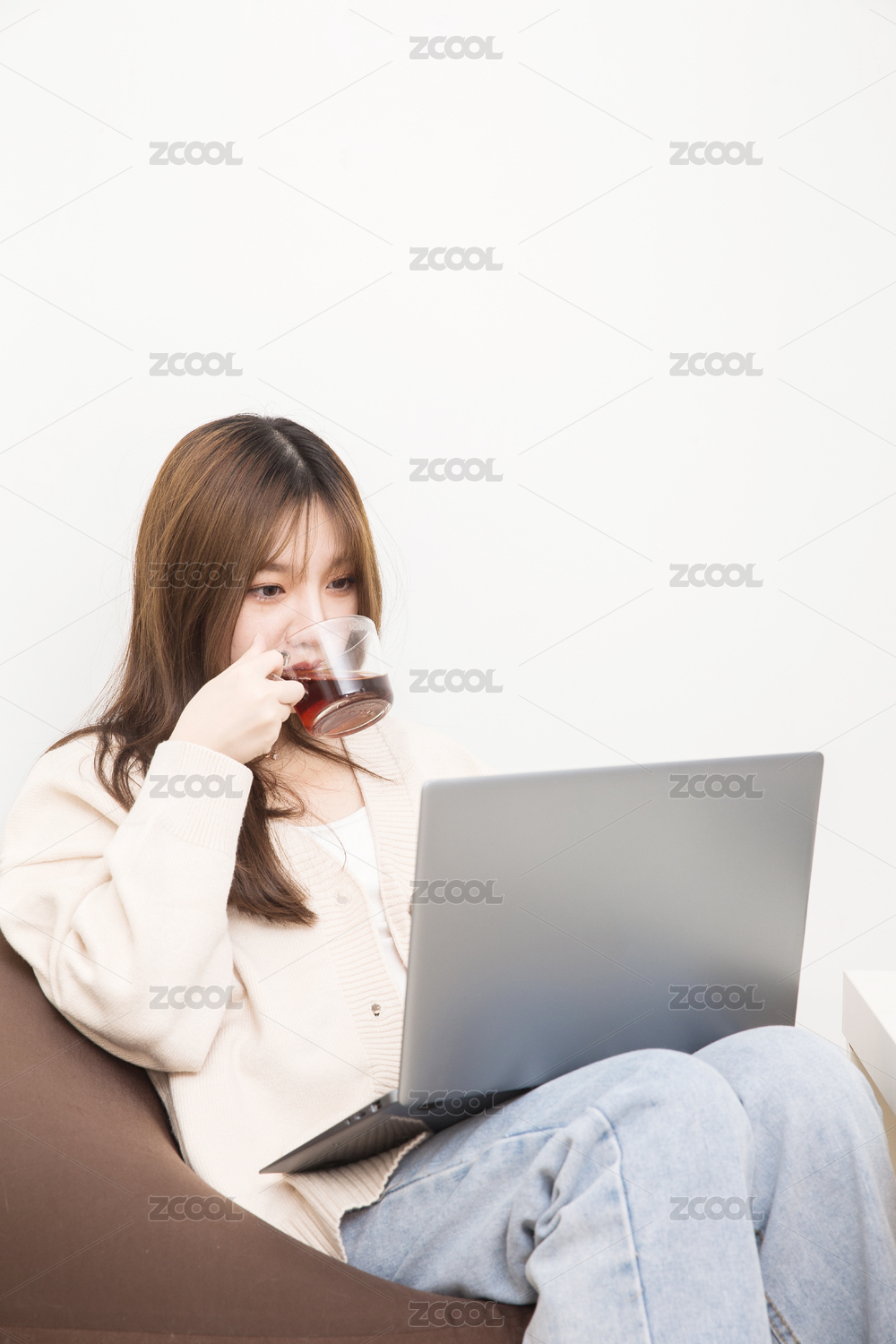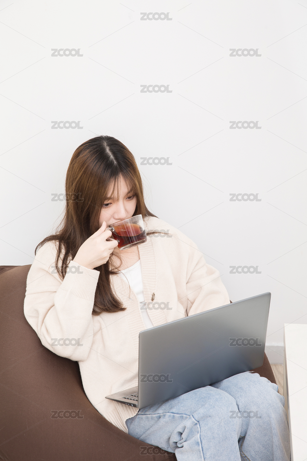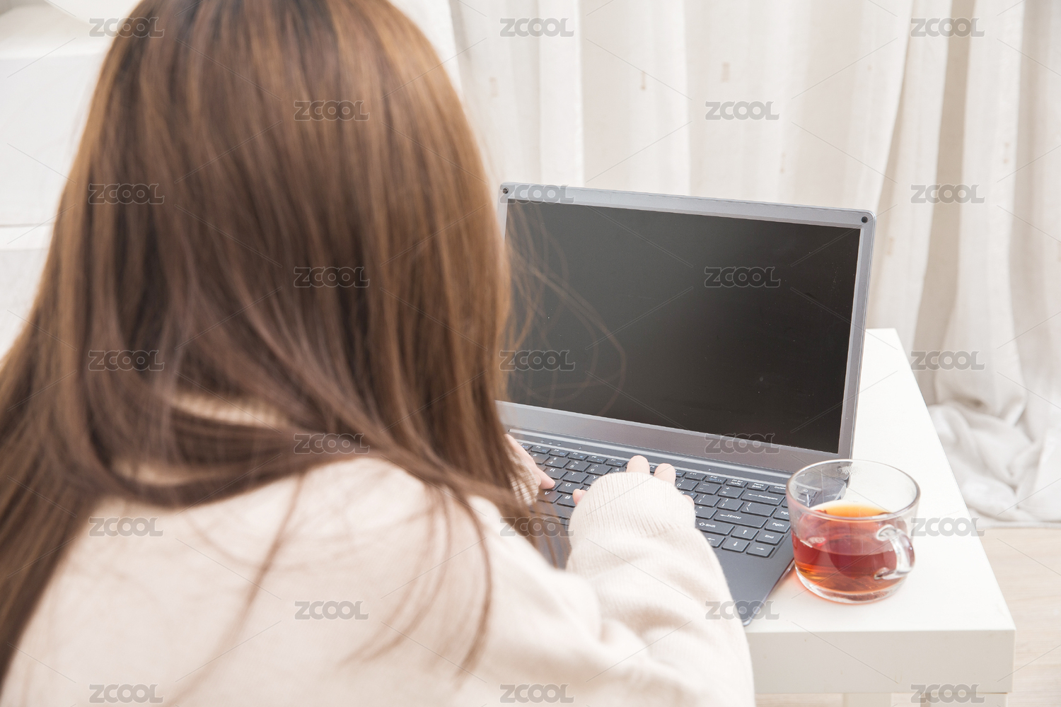 在室内云上课的女学生,云办公商务人像。