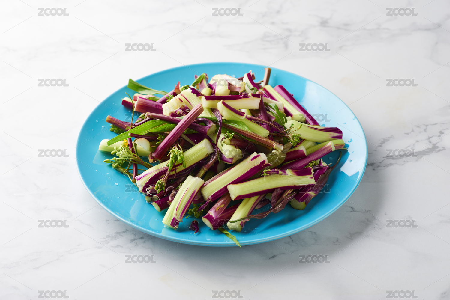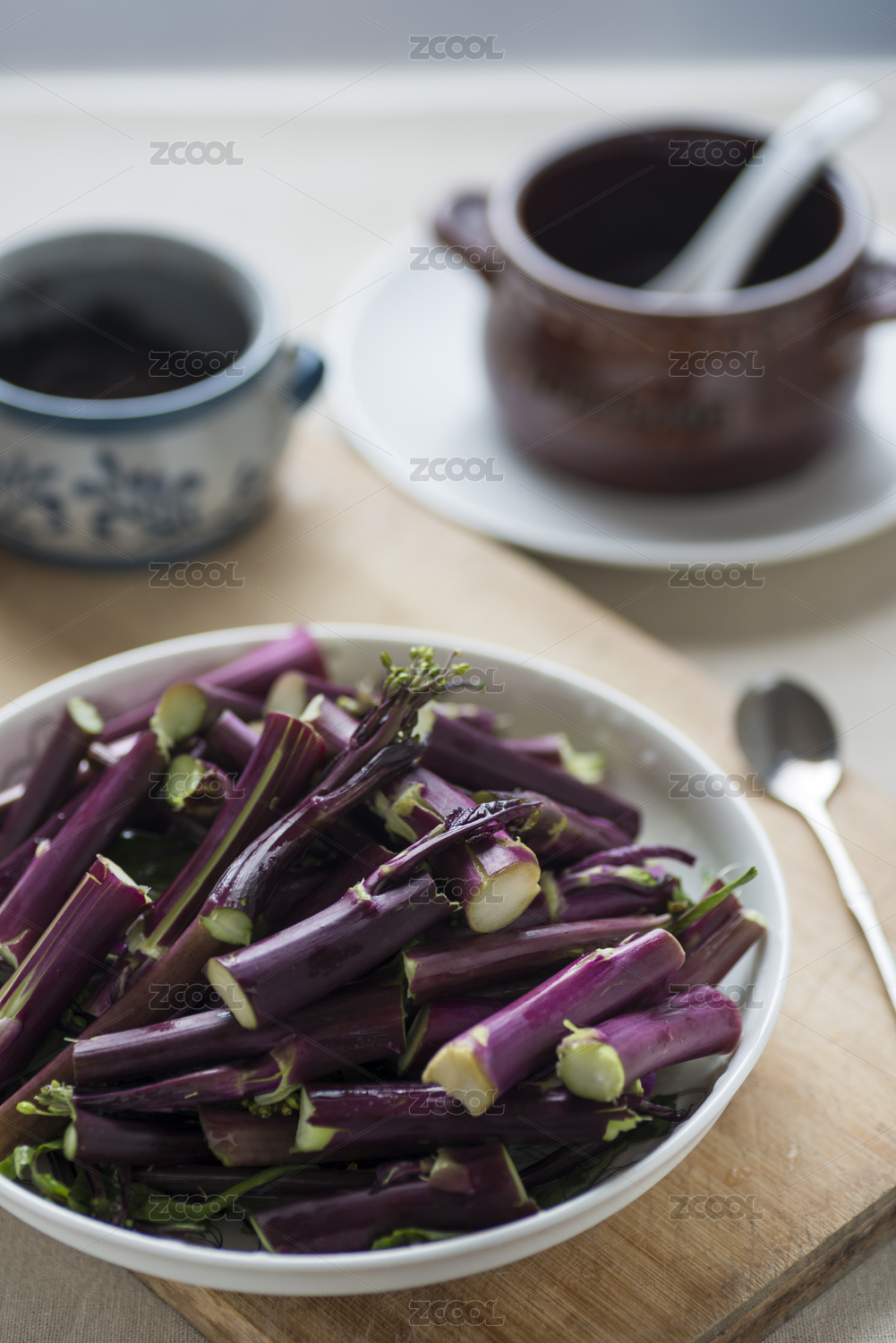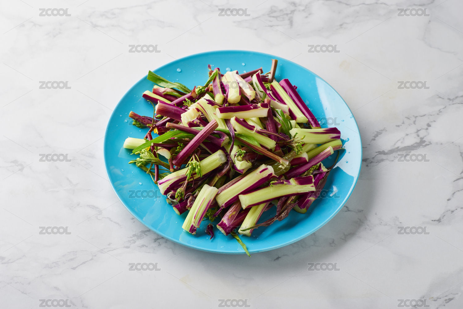 白瓷盘里新鲜脆嫩的洪山菜薹