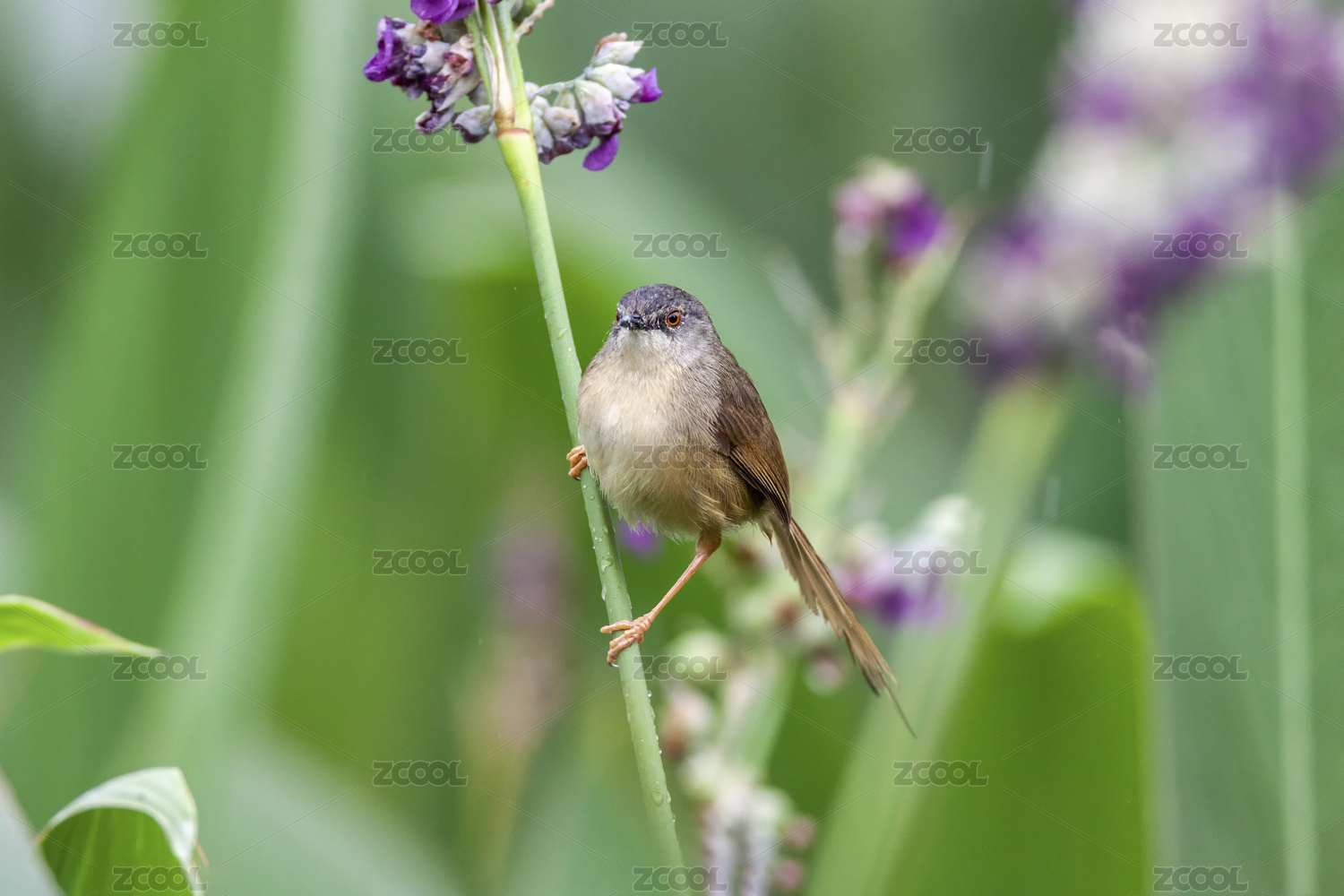 藏匿于芦苇丛中于高草丛中觅食的黄腹鹪莺鸟
