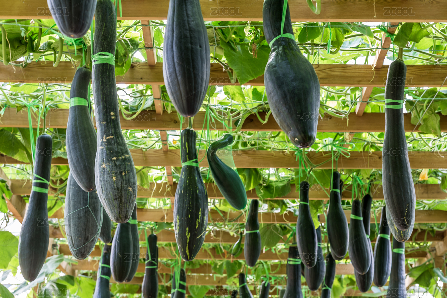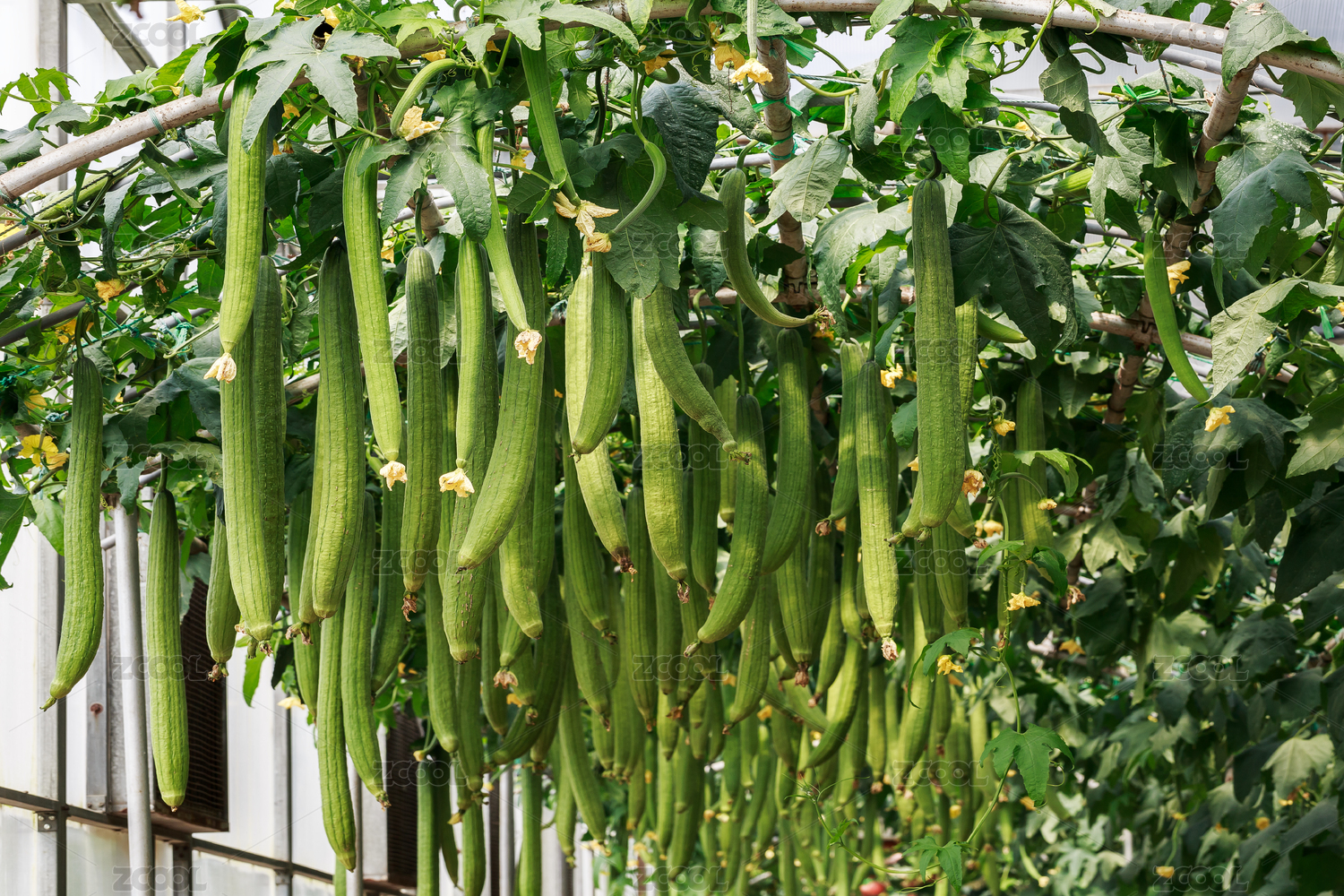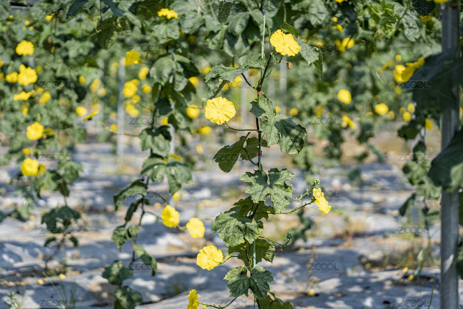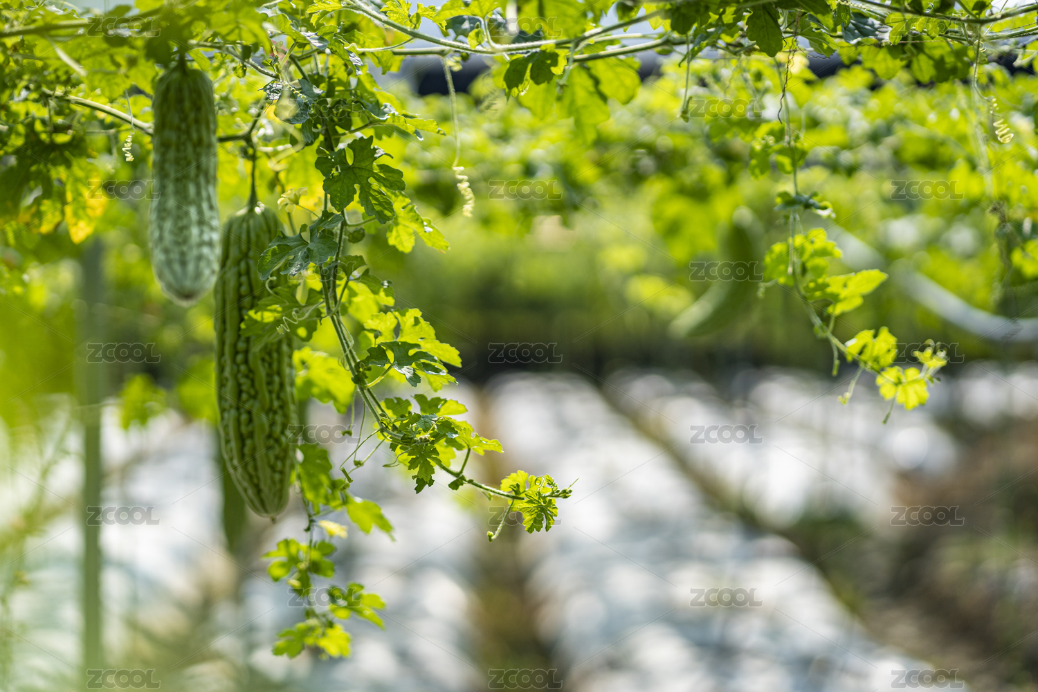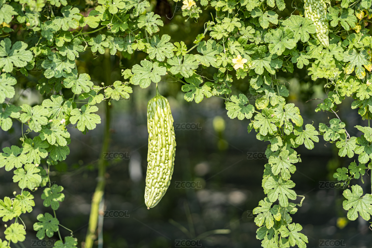 阳光下搭棚架种植的成熟等待收获的苦瓜