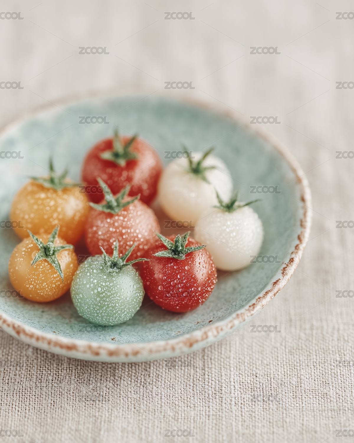 爆浆多汁鲜嫩可口多彩小番茄特写