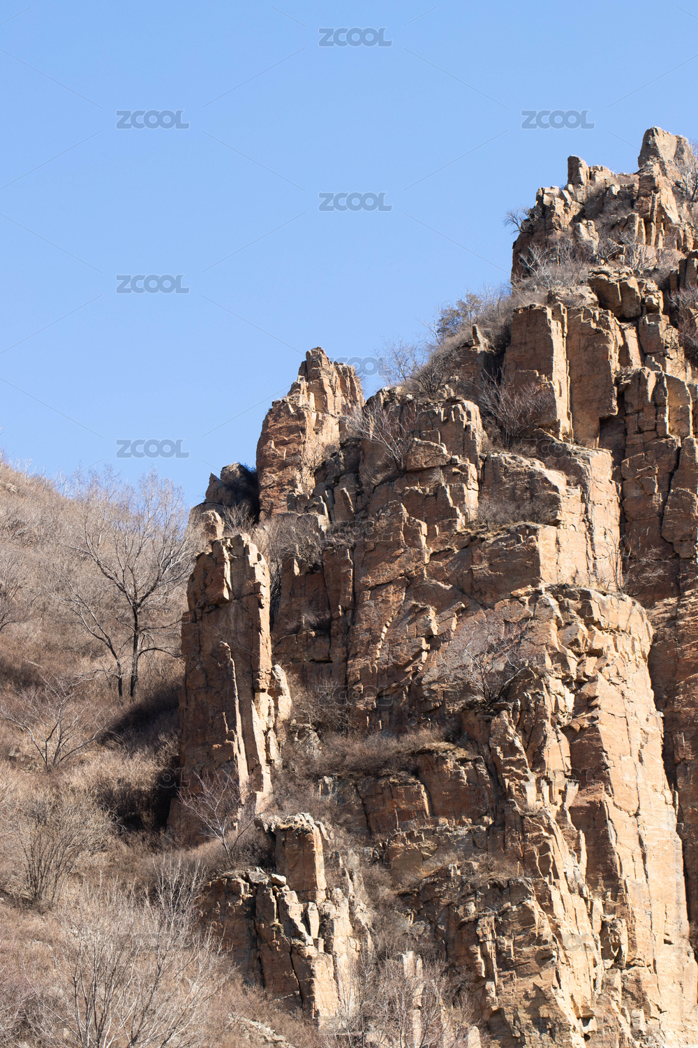 山体上风化的岩石表面
