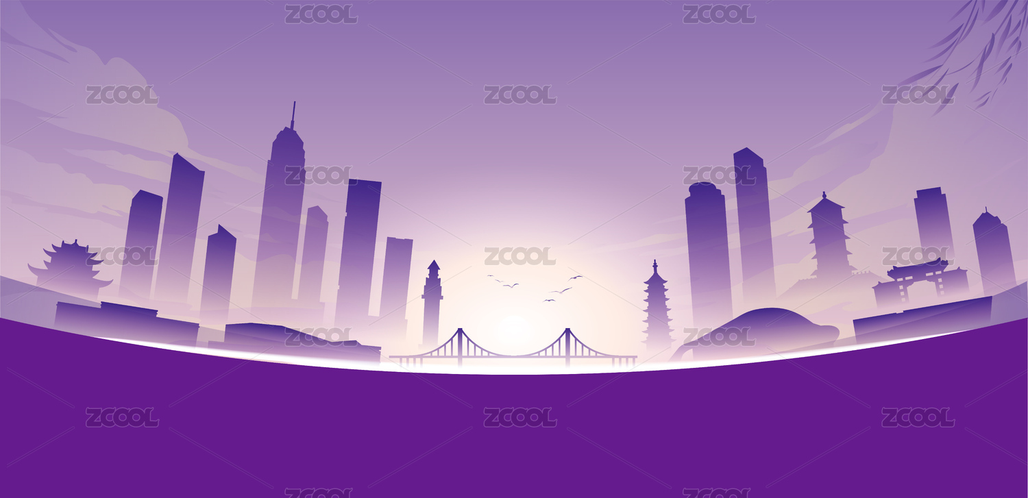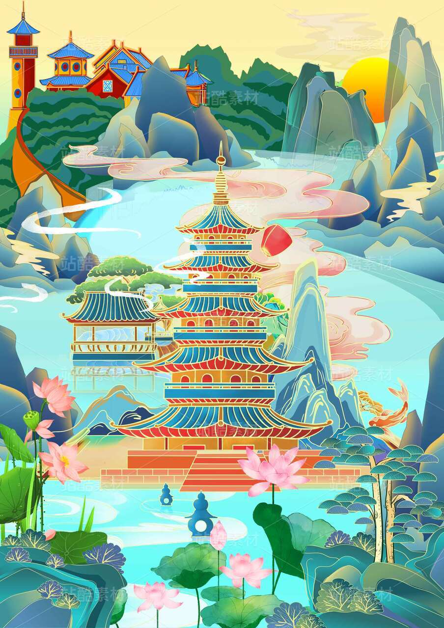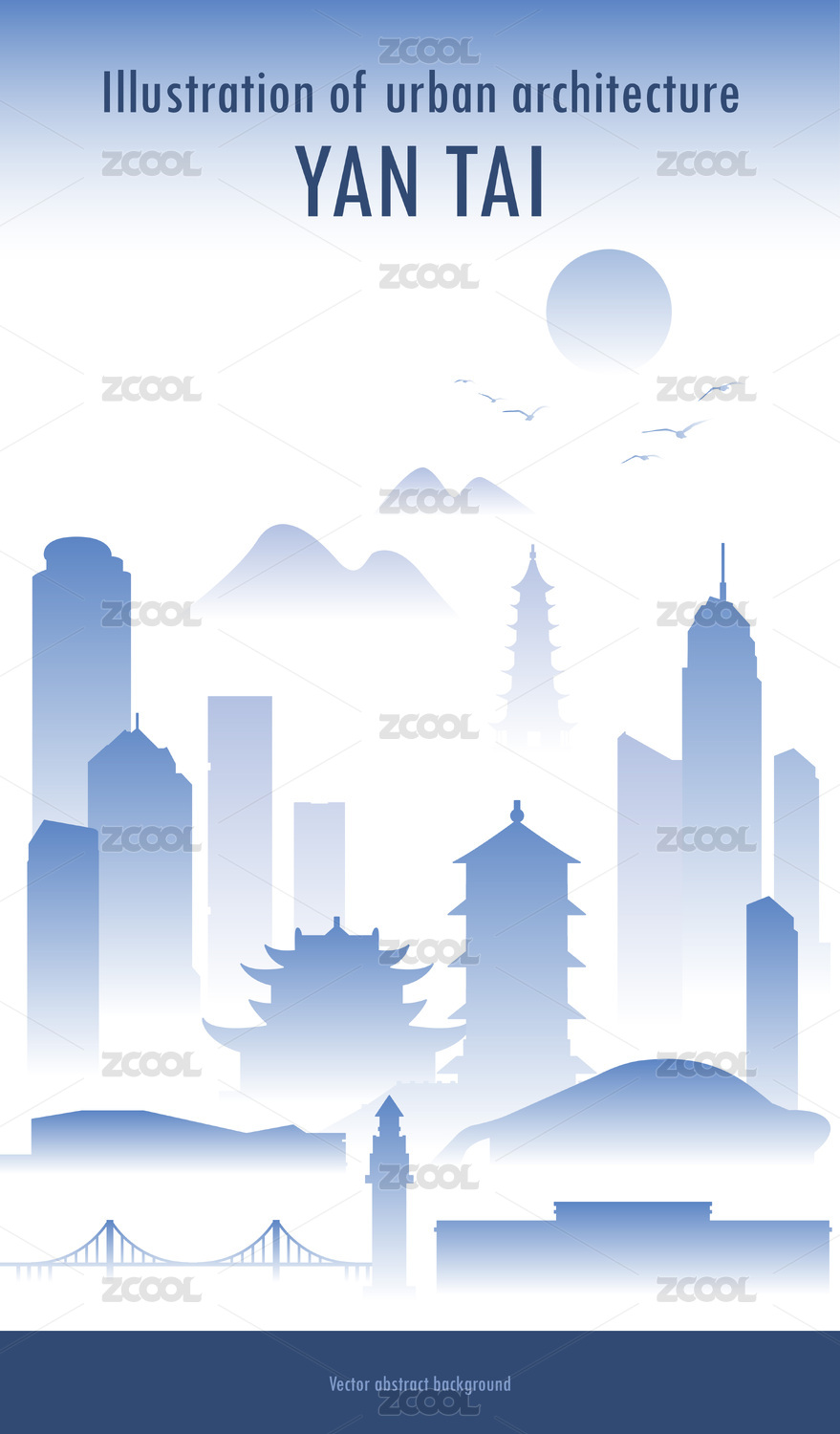 烟台城市地标建筑国潮矢量插画