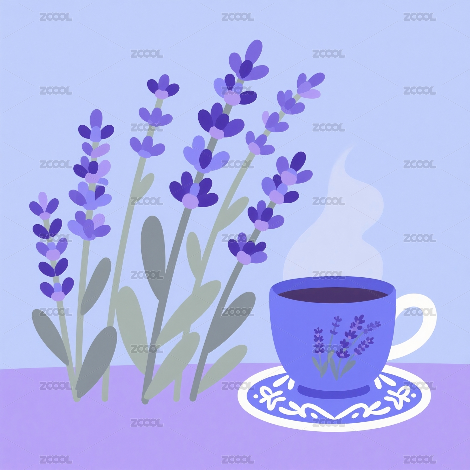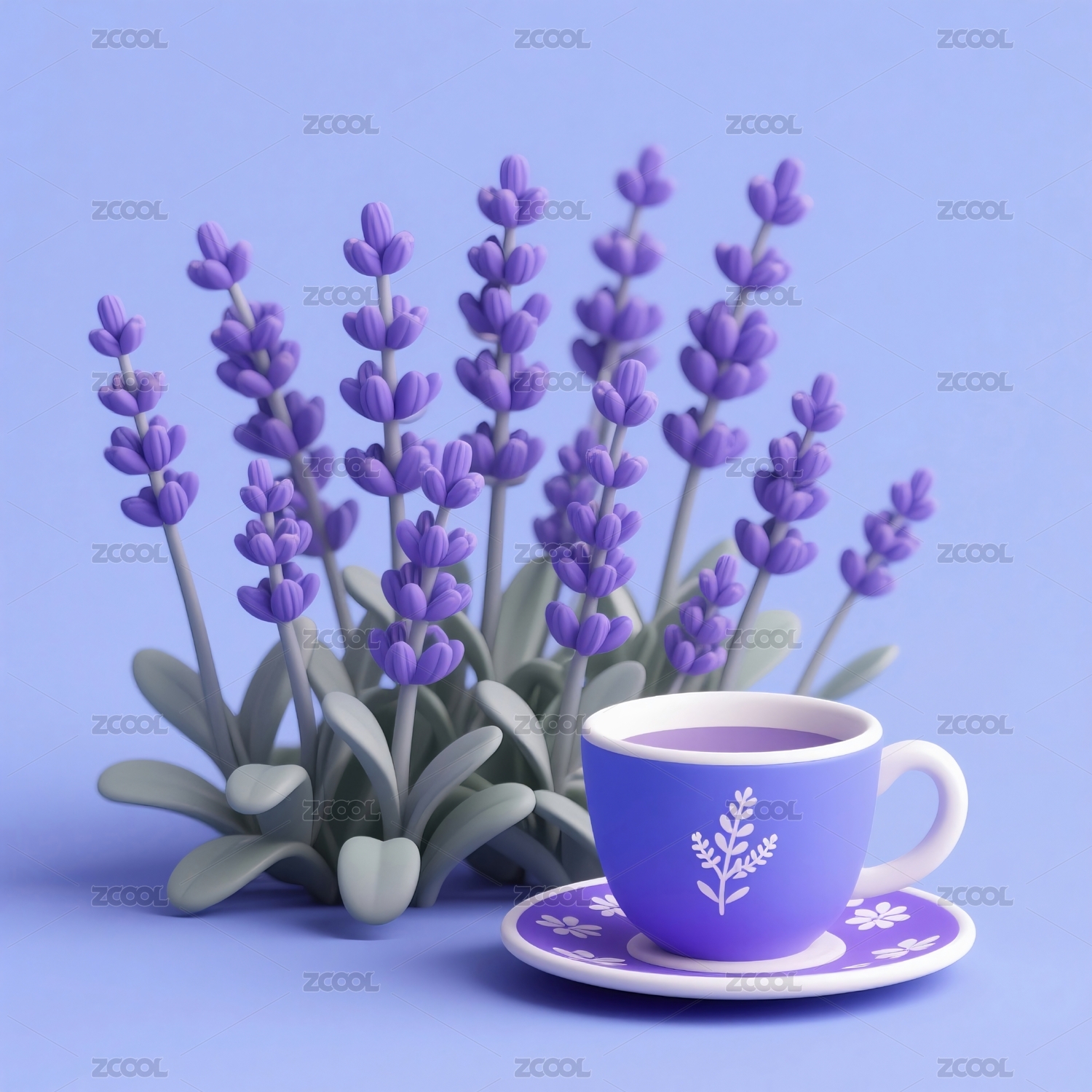 桌面上的杯子里的飘香四溢的薰衣草茶