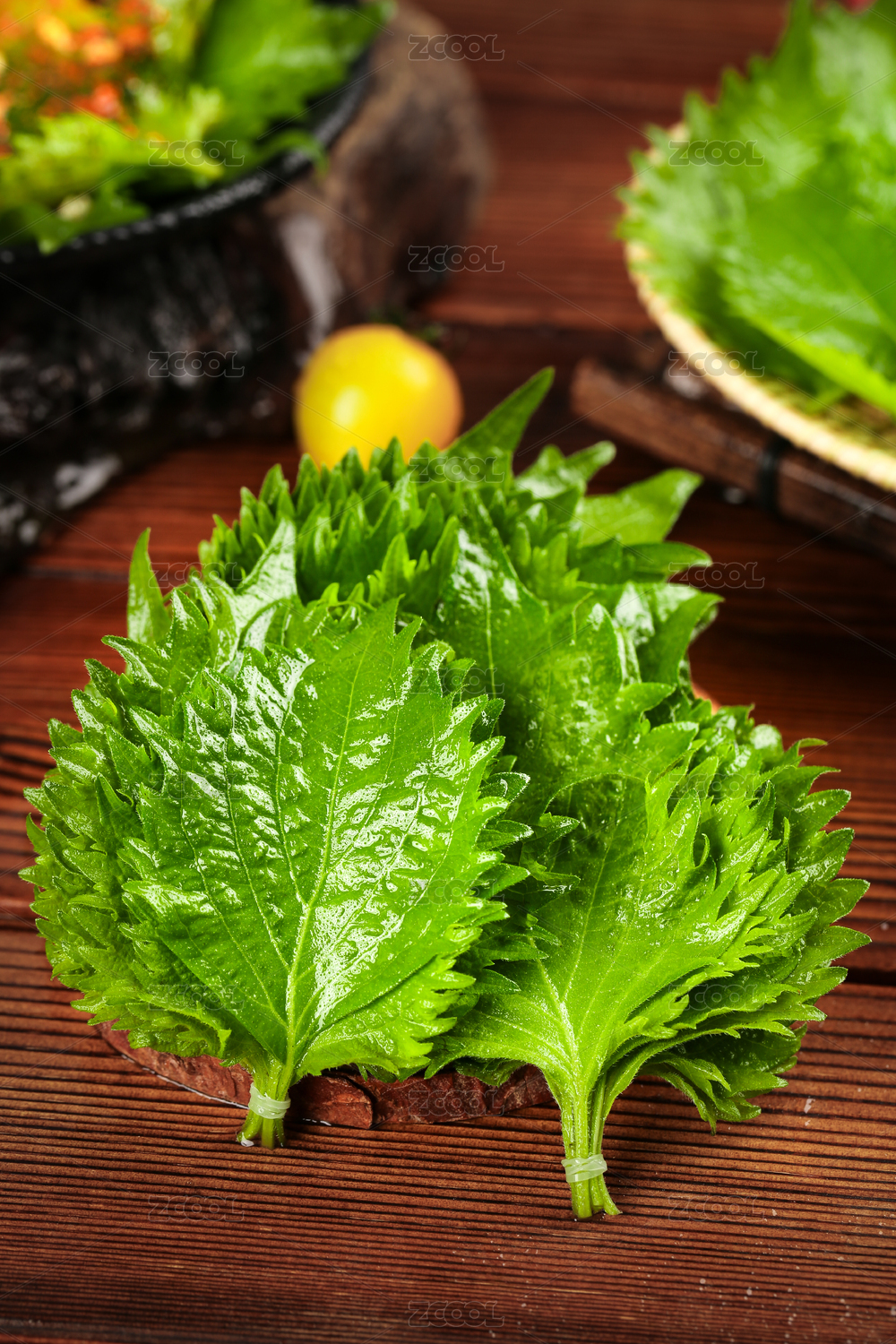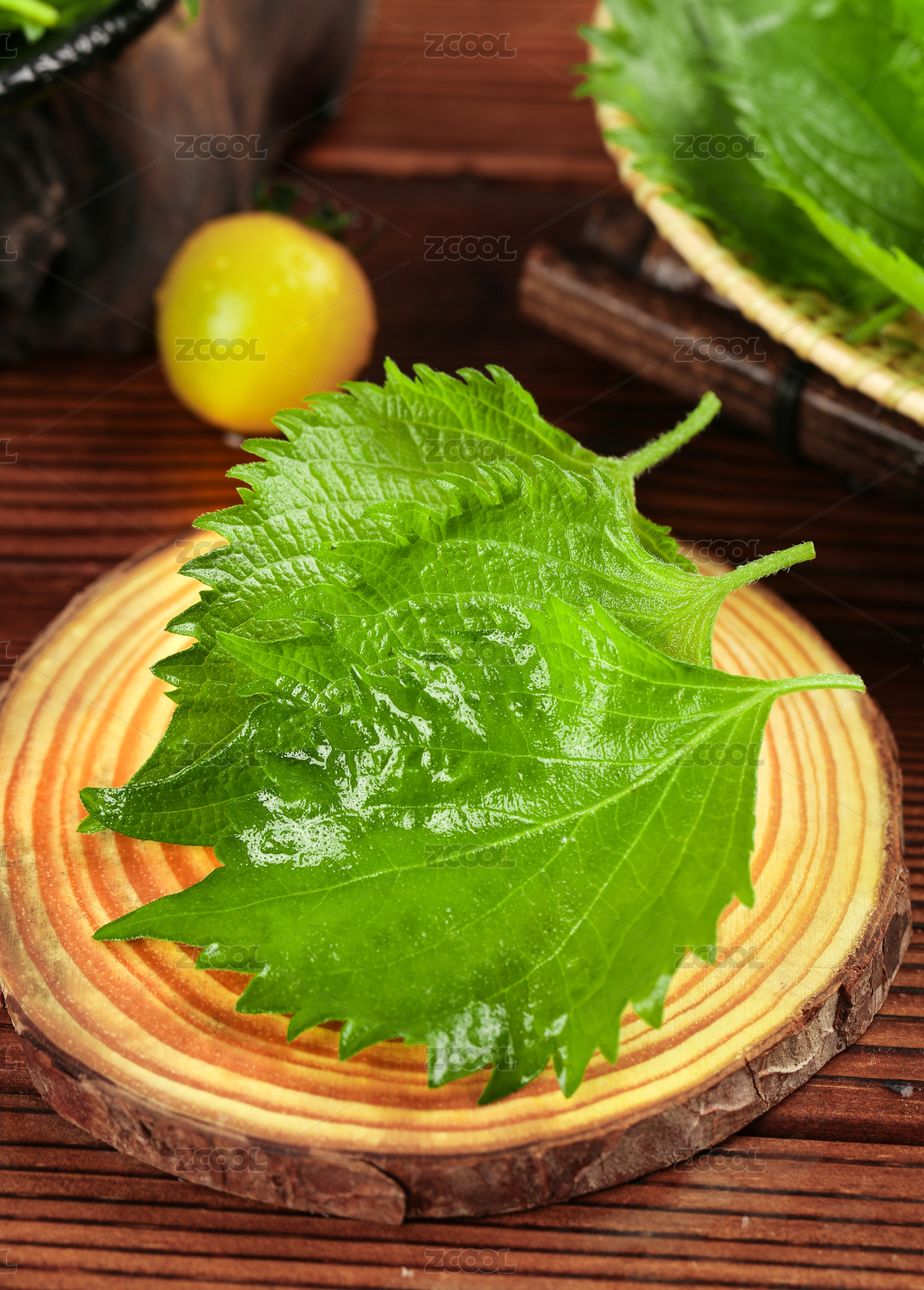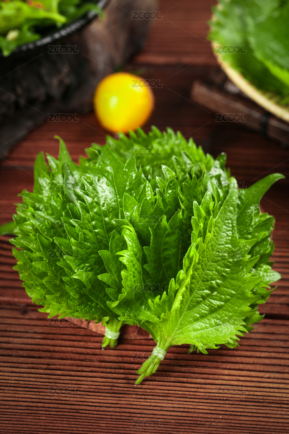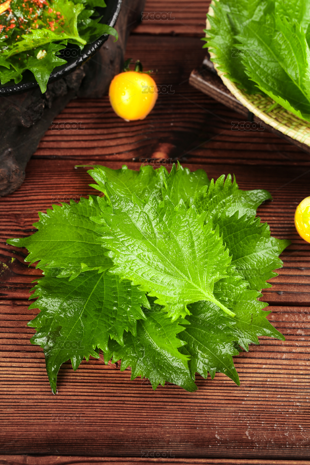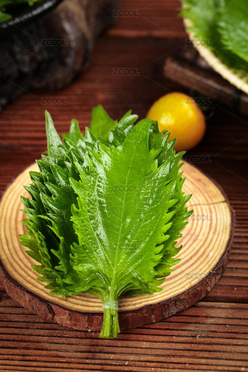 木底上放着新鲜东北苏子叶