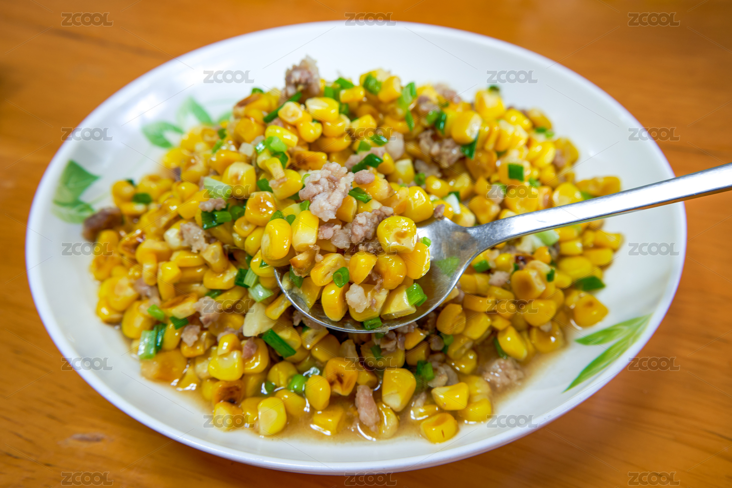 一碟美味的中国家常菜,肉末炒玉米