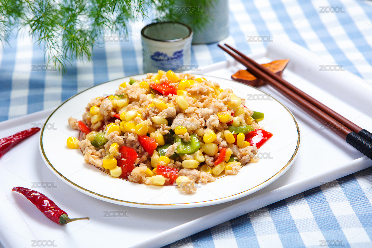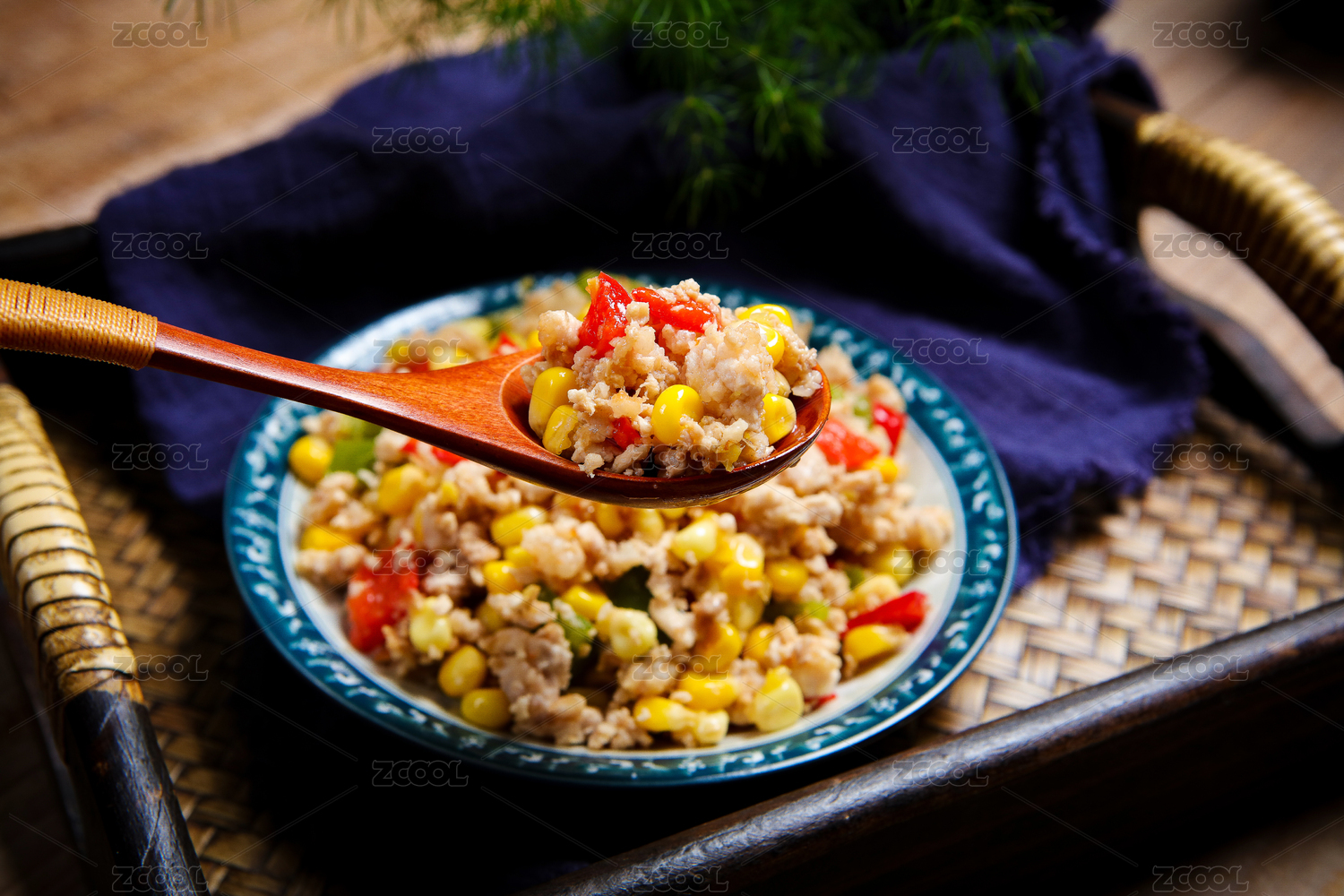 营养美味特色菜彩椒玉米炒肉沫