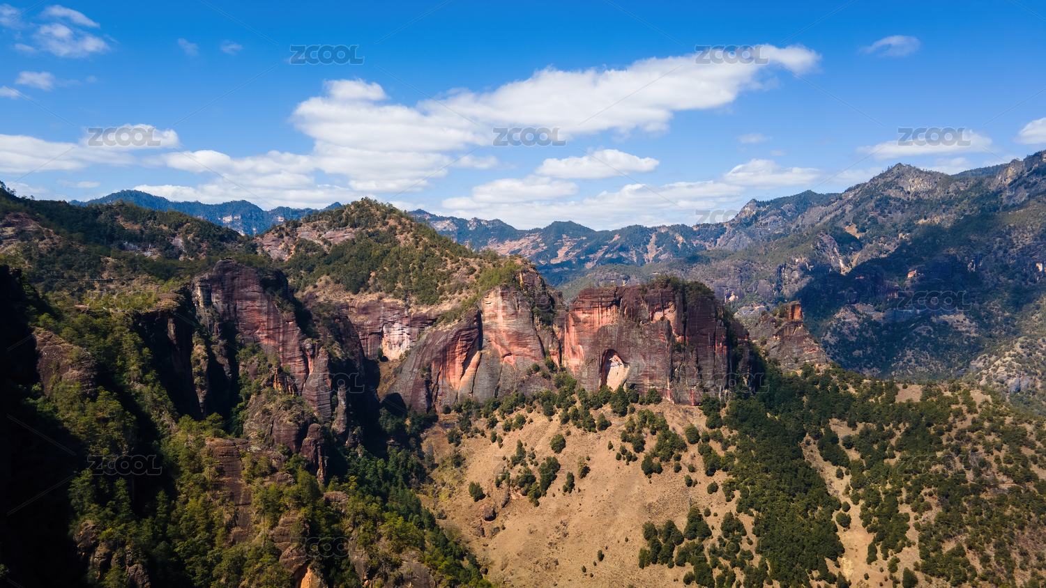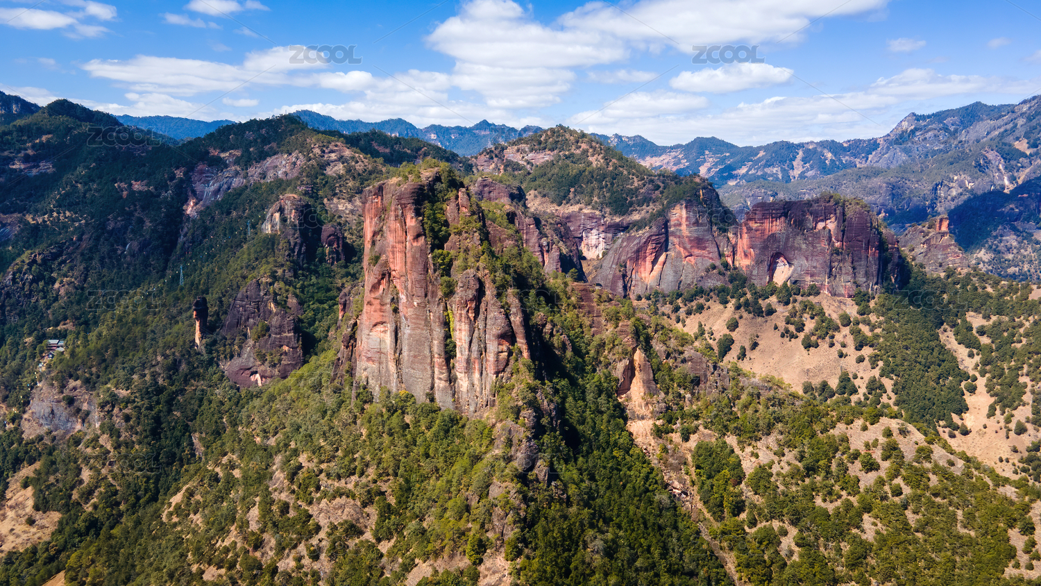 航拍中国云南丽江老君山丹霞地貌