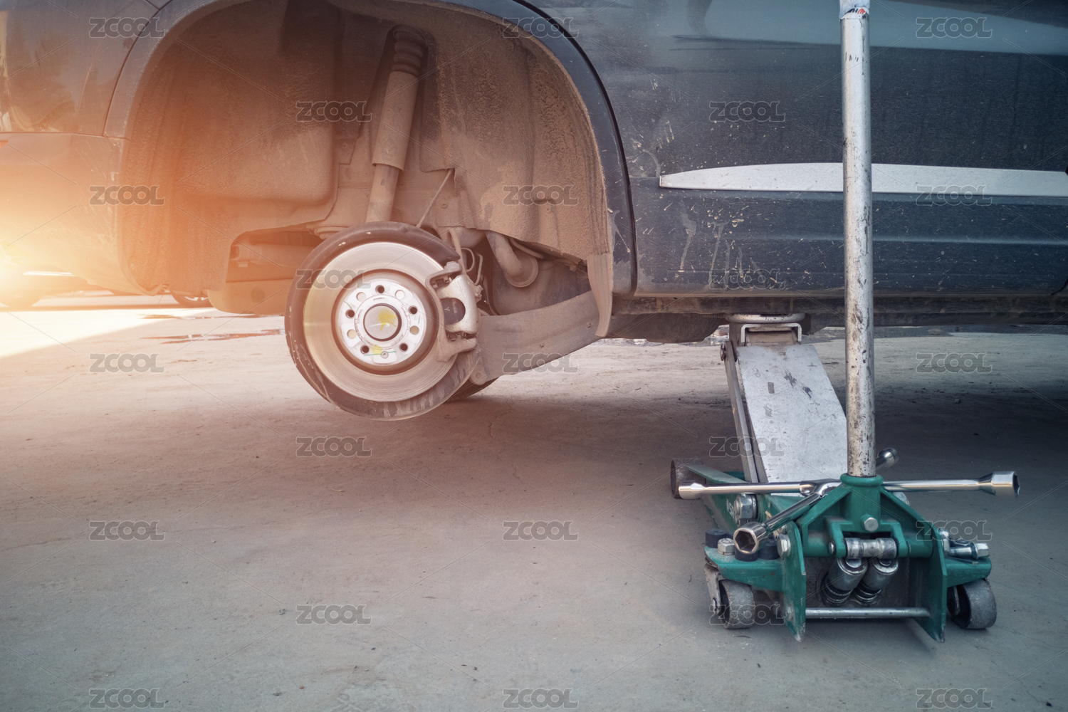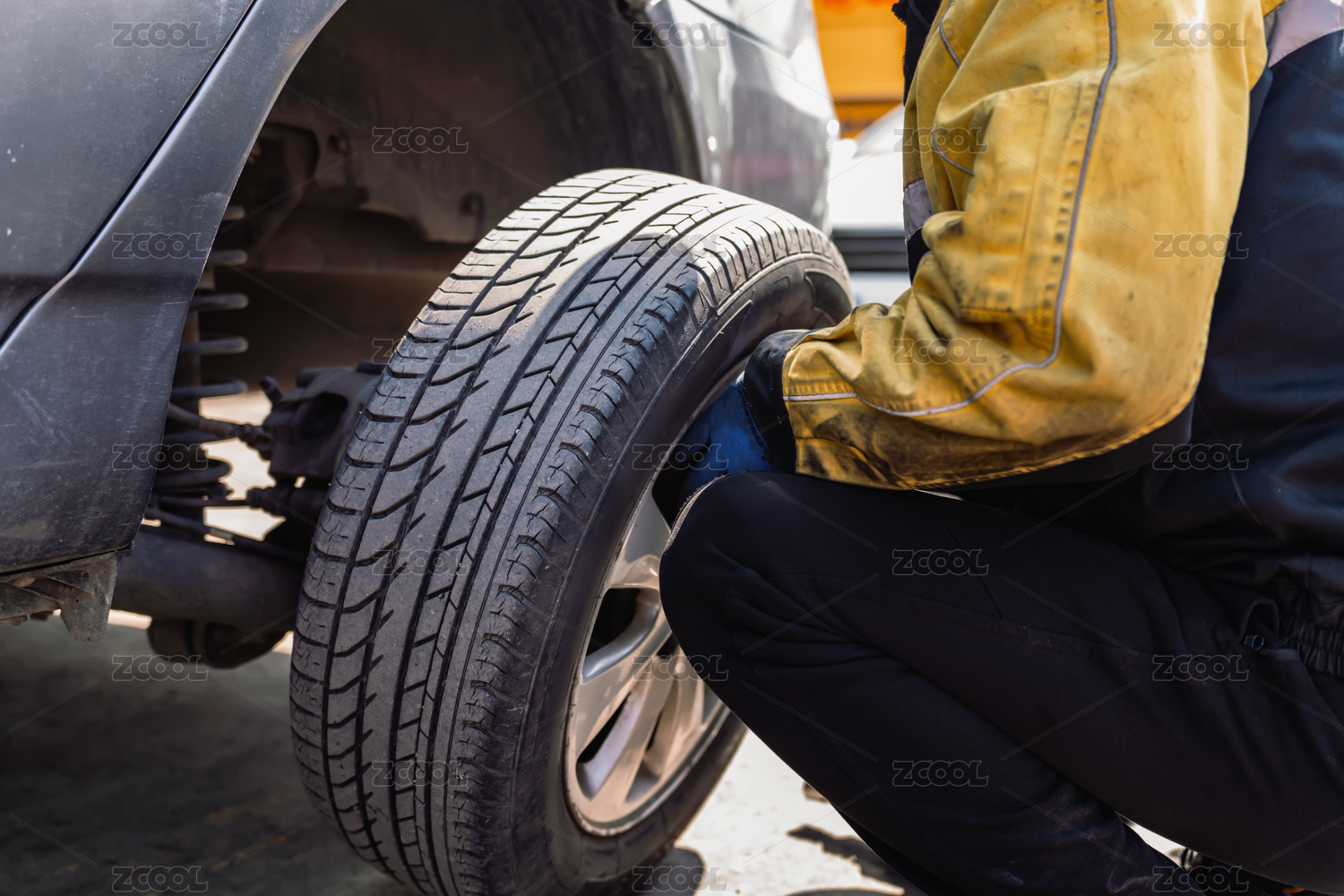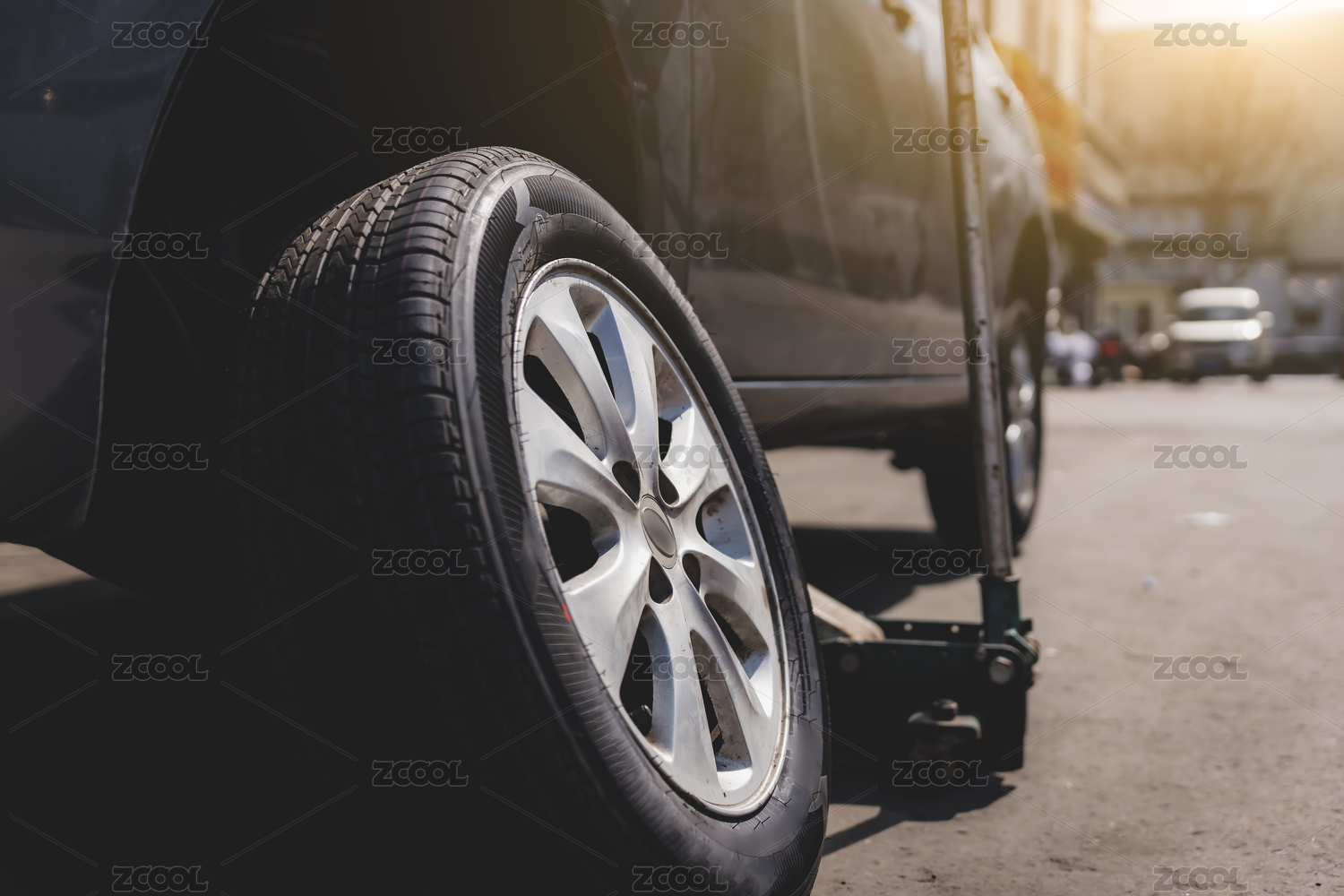 小汽车更换轮胎作业