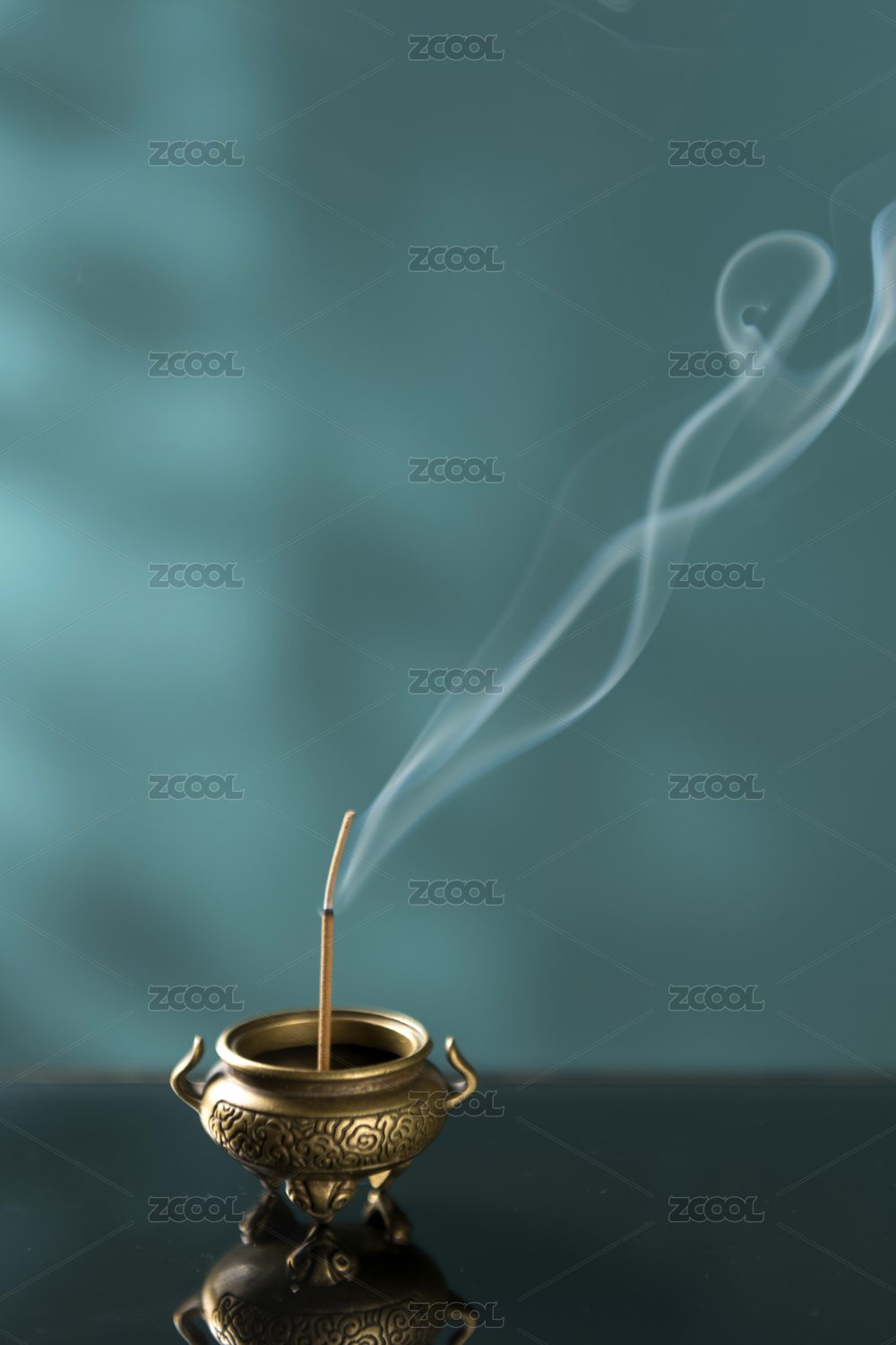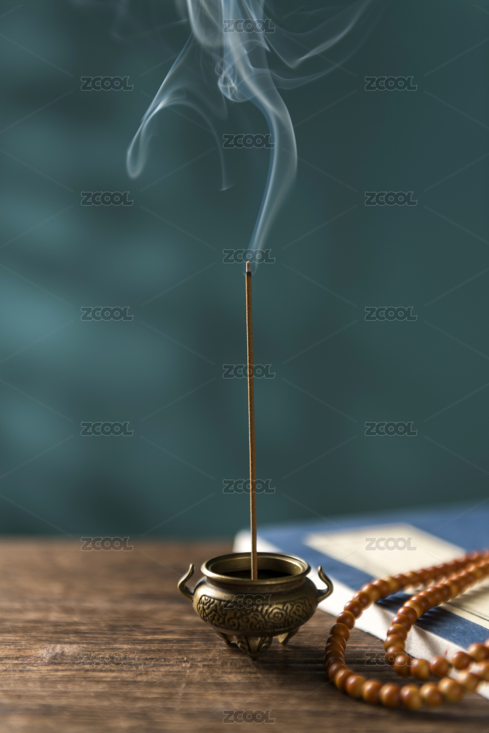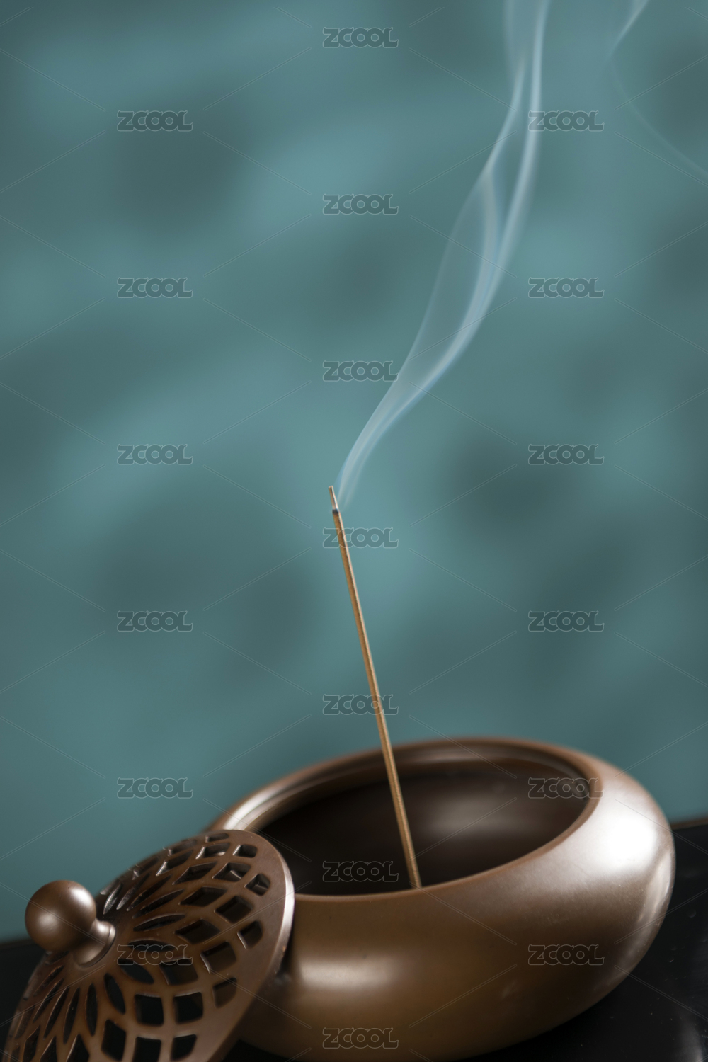 正在香炉中焚烧的沉香线香特写深色调