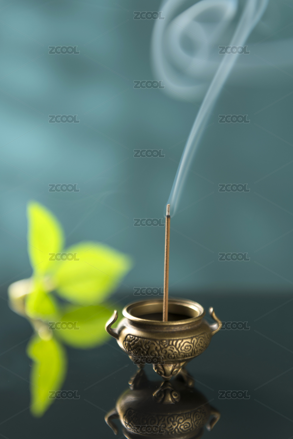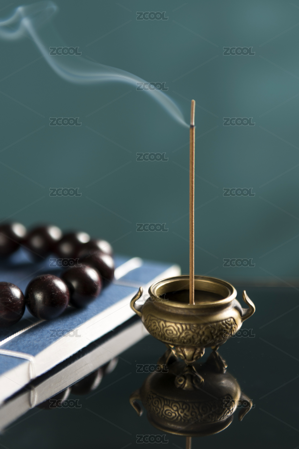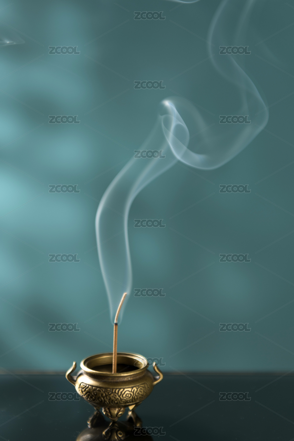 正在香炉中焚烧的沉香线香特写深色调