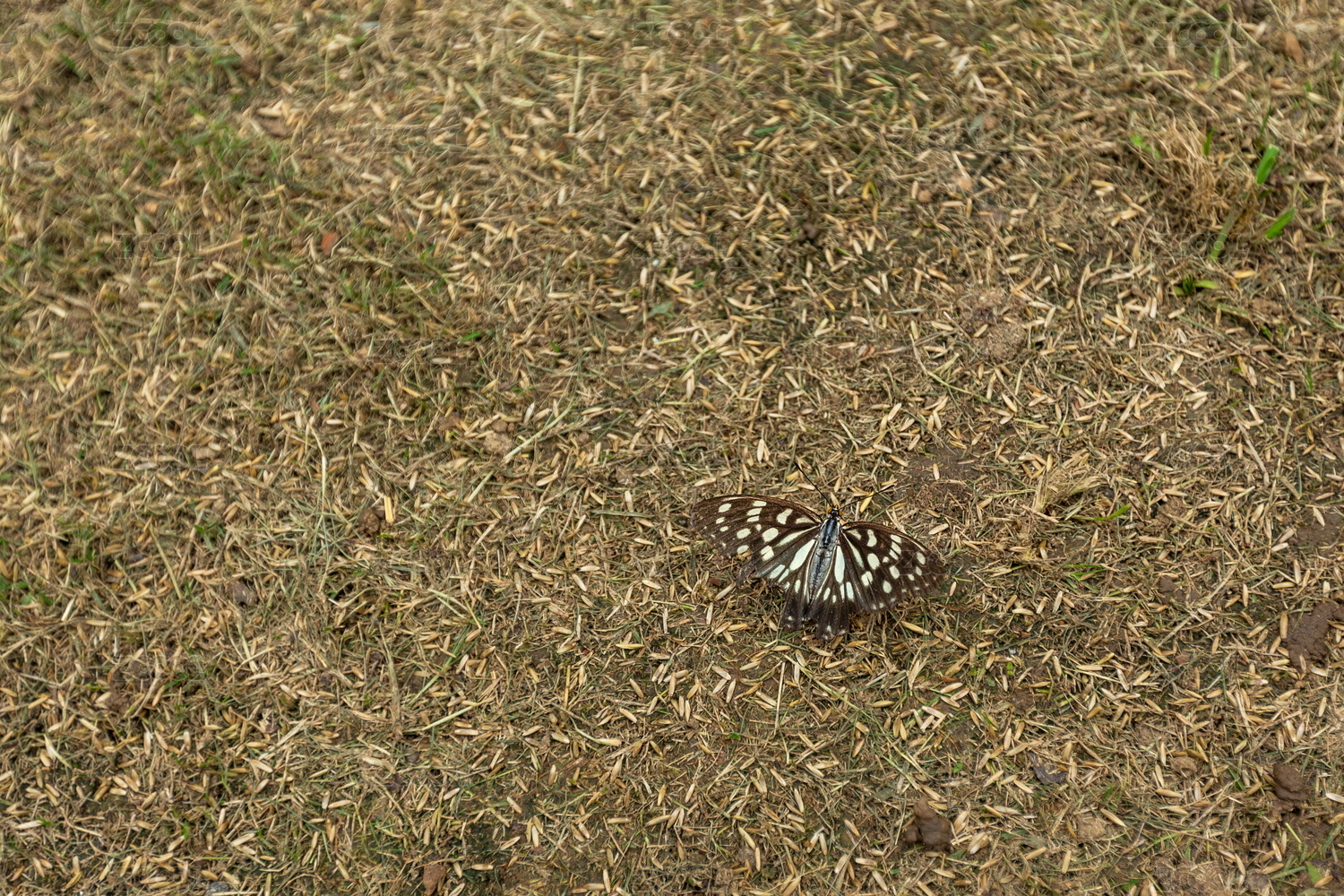 一只斑蝶栖息地面