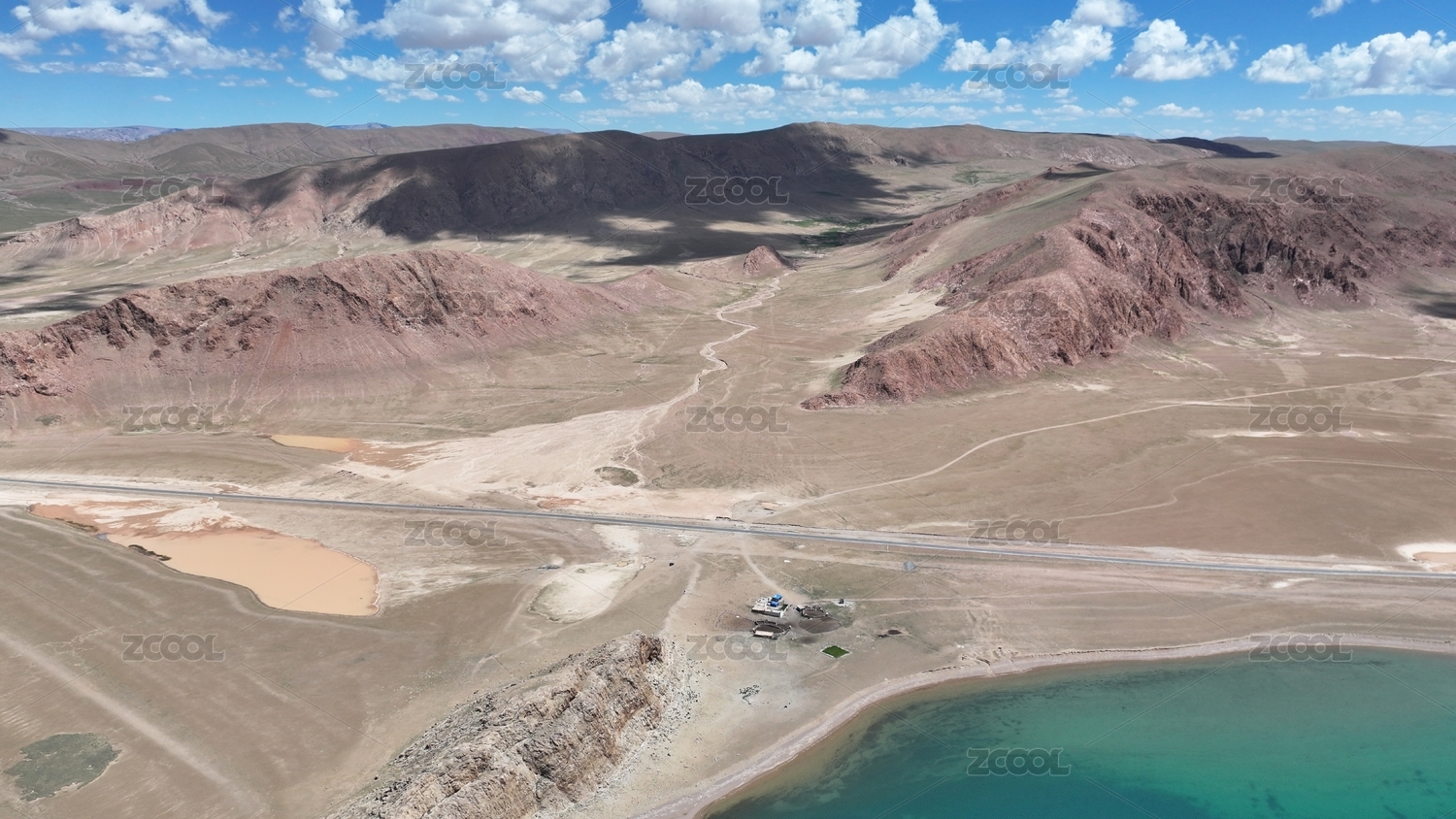 印加安第斯山脉智利和玻利维亚边境高原沙漠,有片绿洲是火烈鸟和其他动物的栖息地