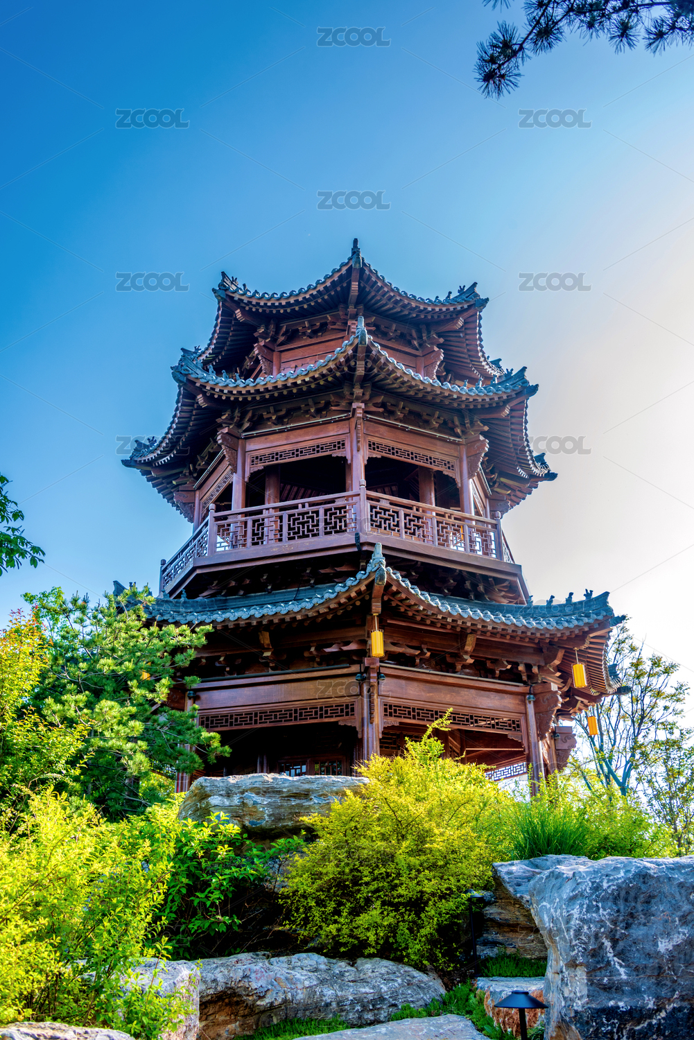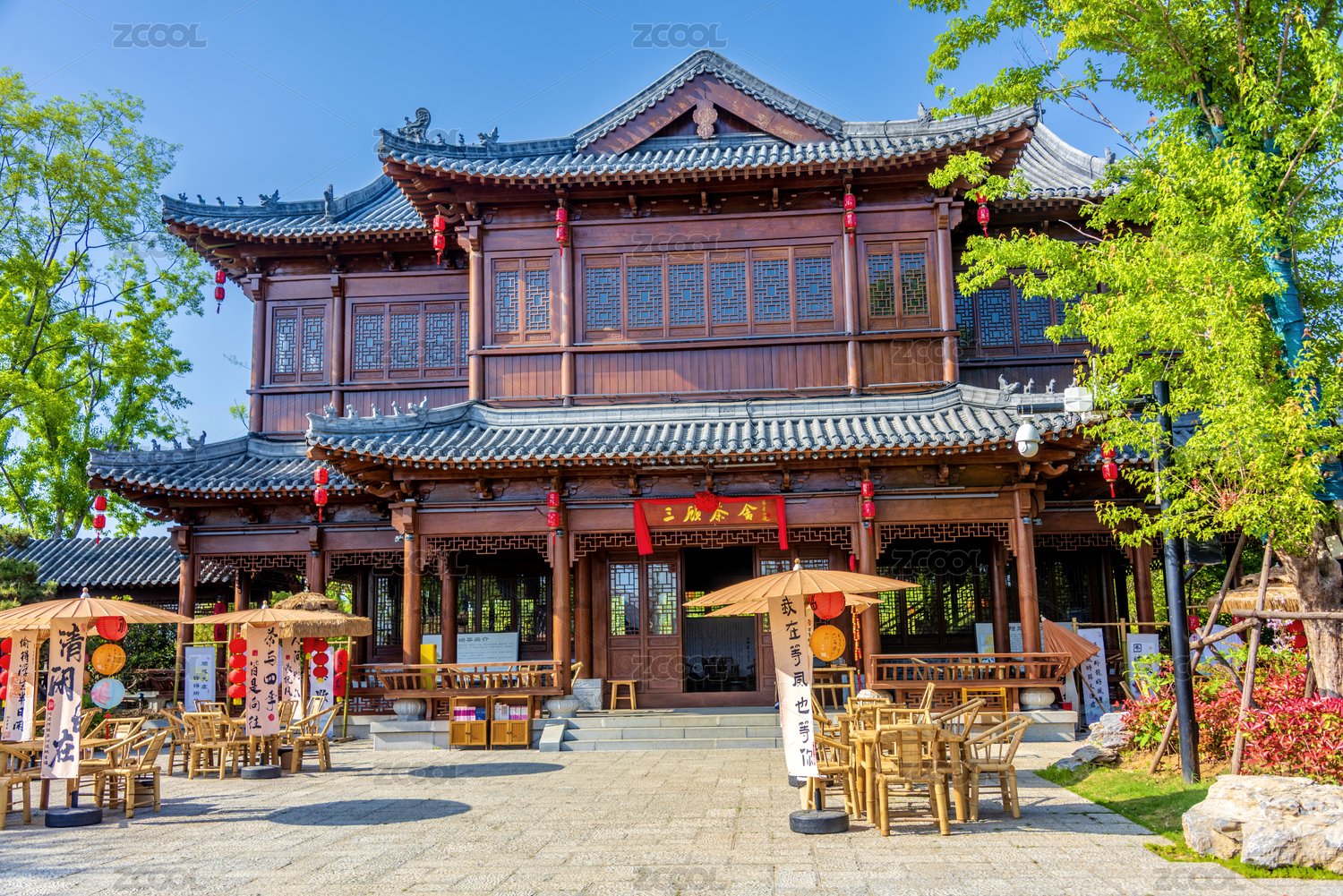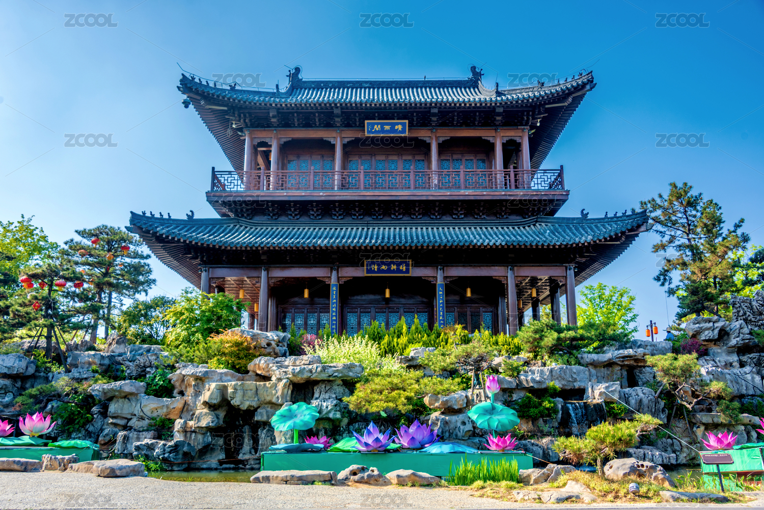 中国河南南阳卧龙岗景区园林风光