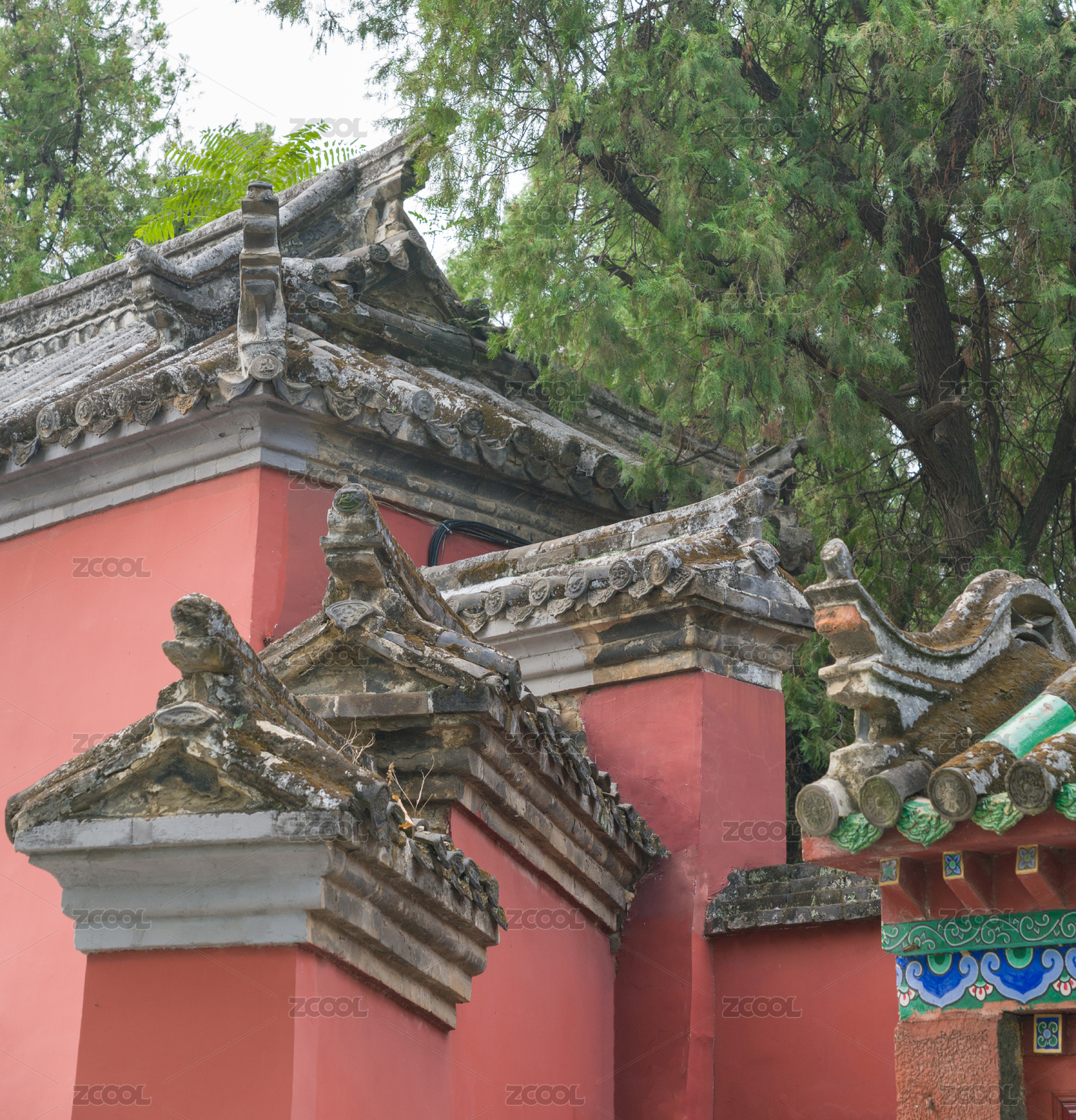 河南南阳卧龙岗景区武侯祠红墙灰瓦的檐墙