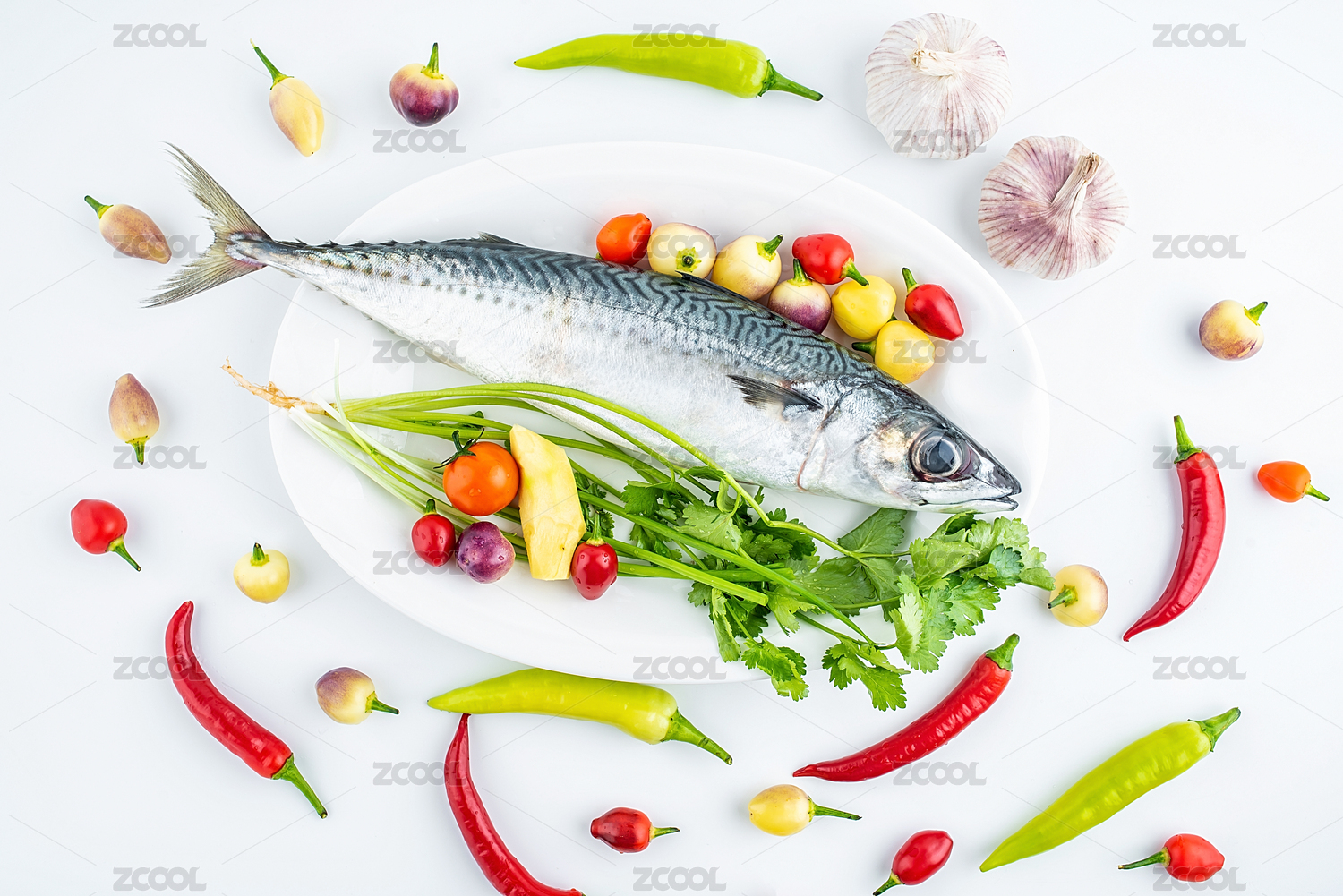 鲐鱼和烹饪新鲜香料食材