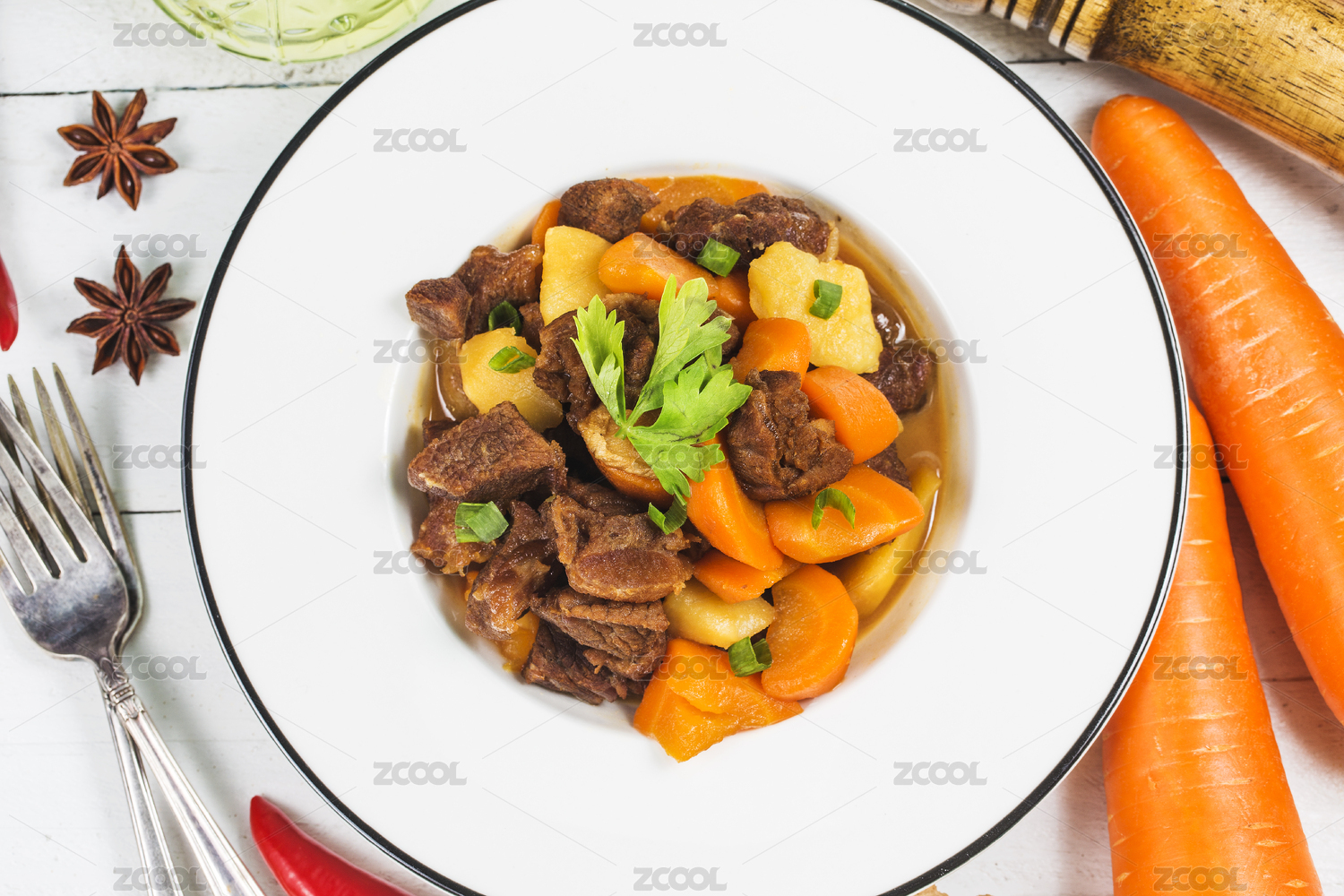 一盘炖奶牛肉