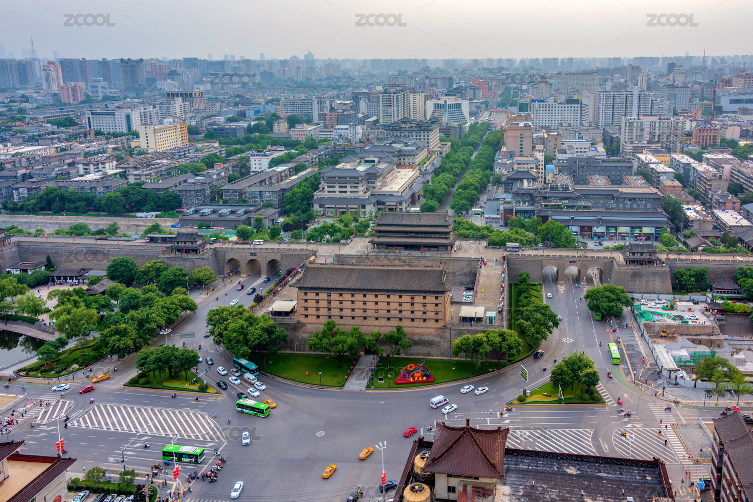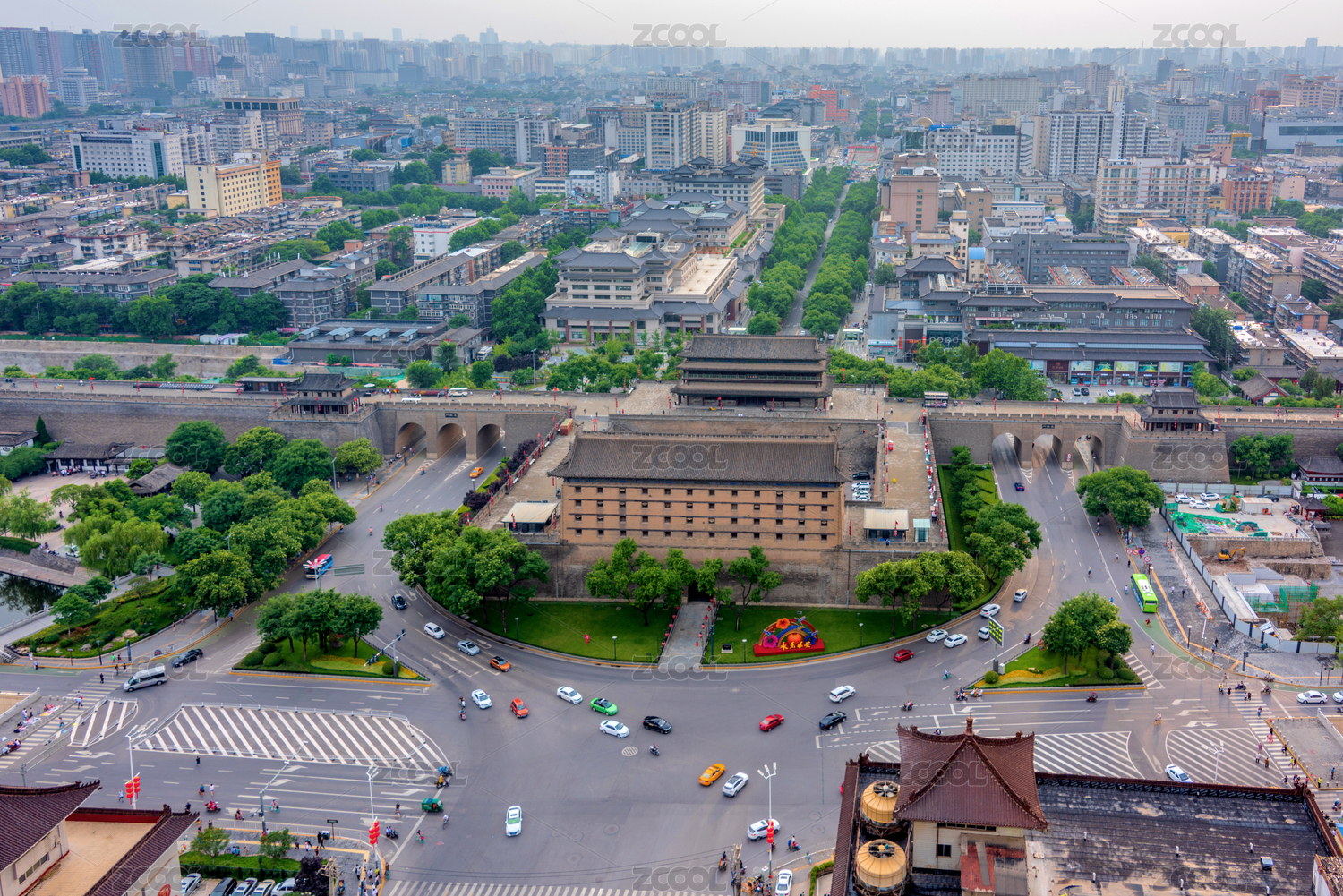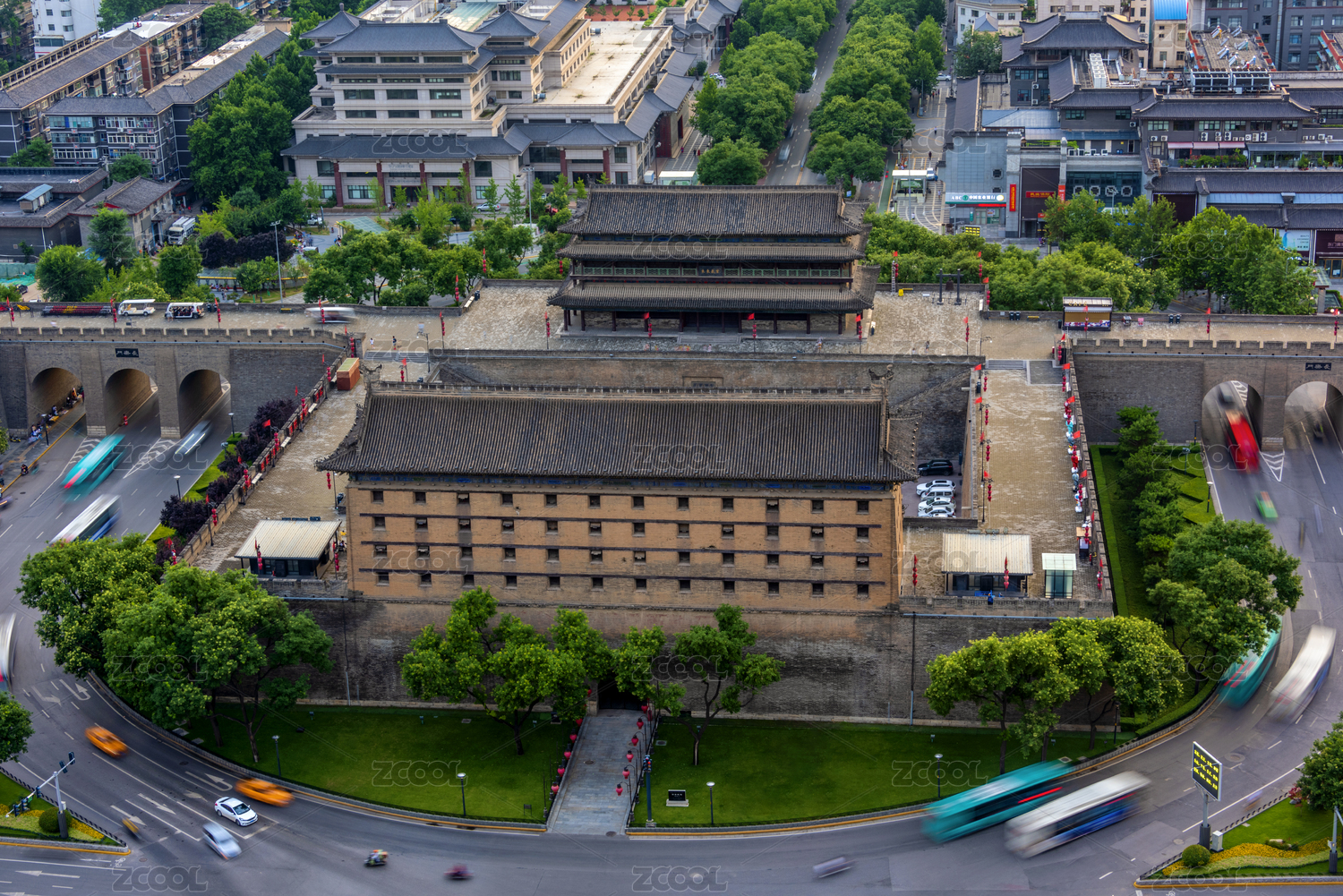 中国陕西西安古城墙长乐门古建筑风光