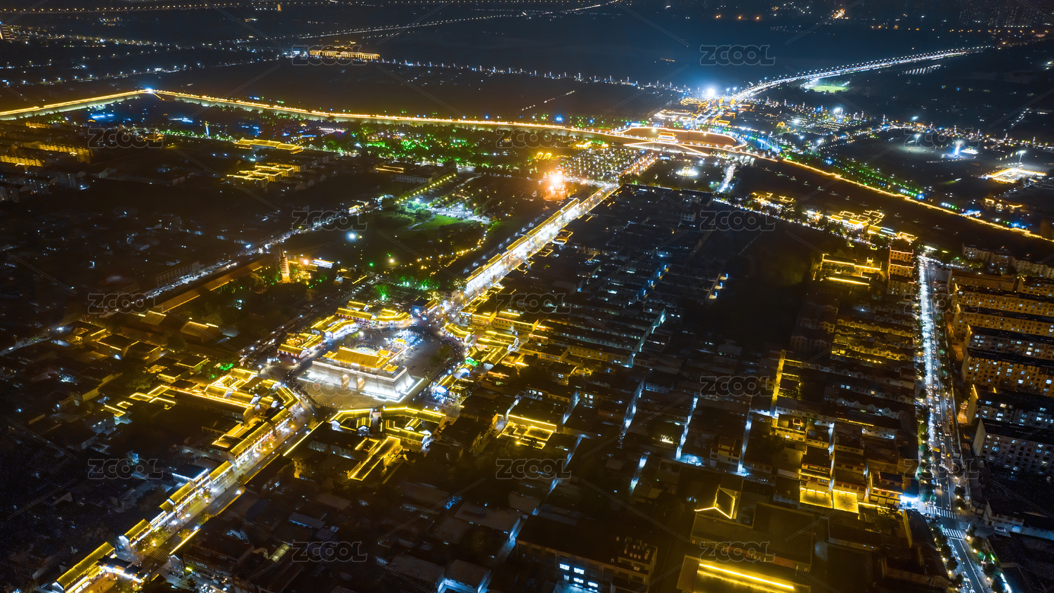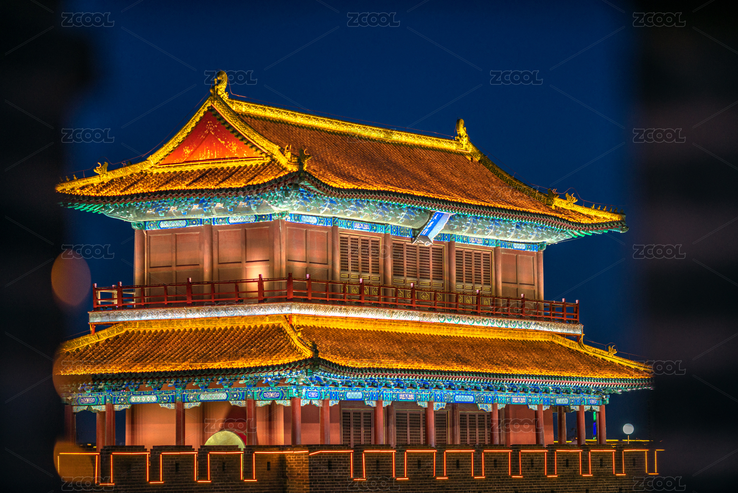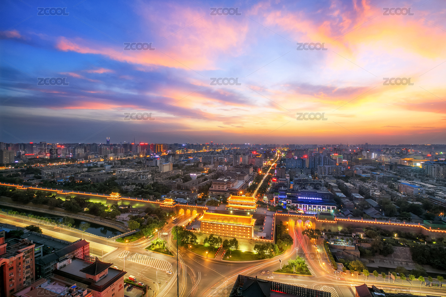 陕西省西安长乐门城墙景区夜景全景风光