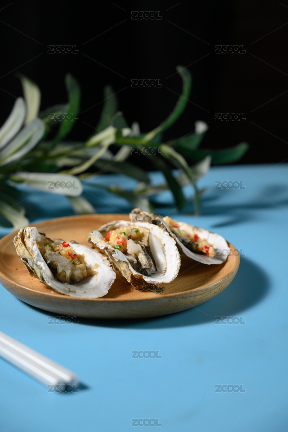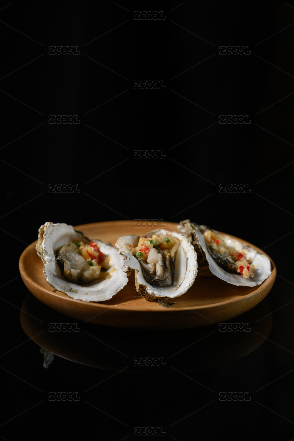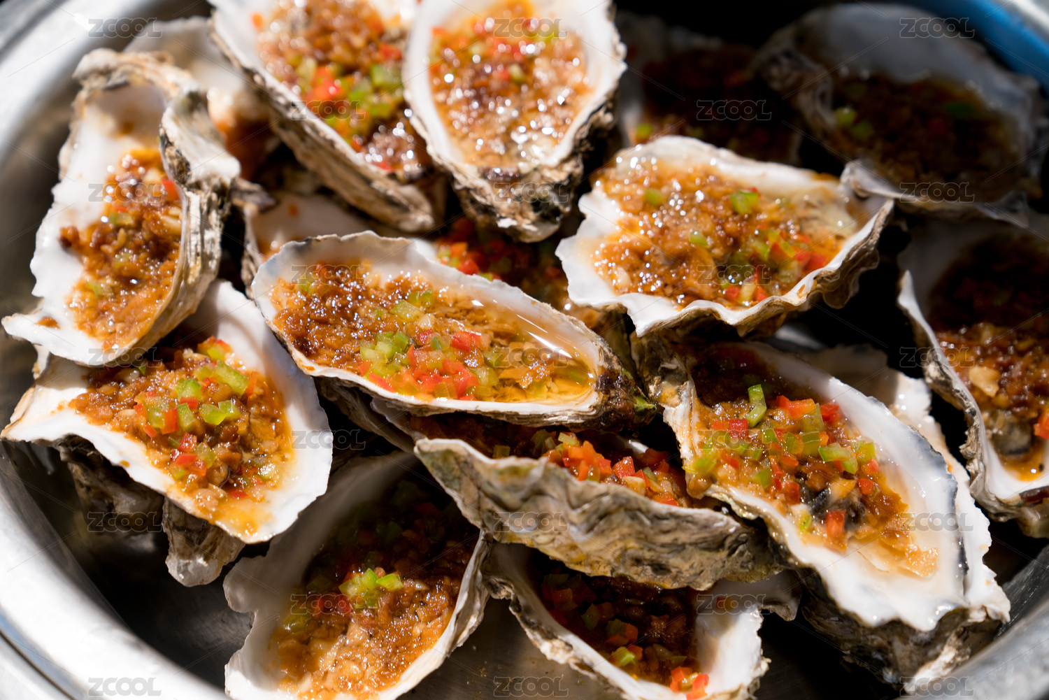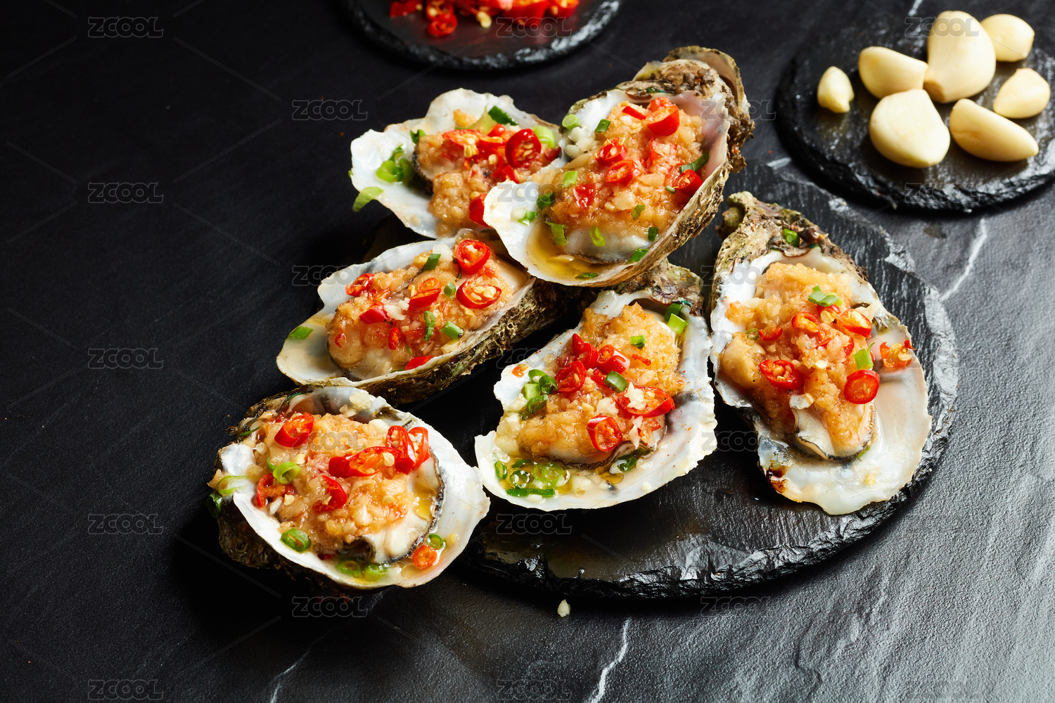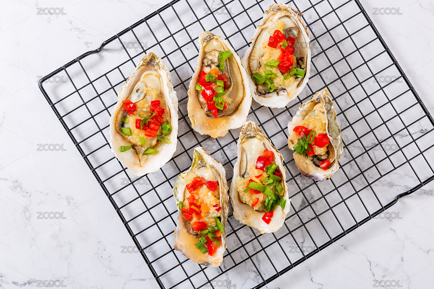 摆放在烧烤架子上的蒜蓉烤生蚝