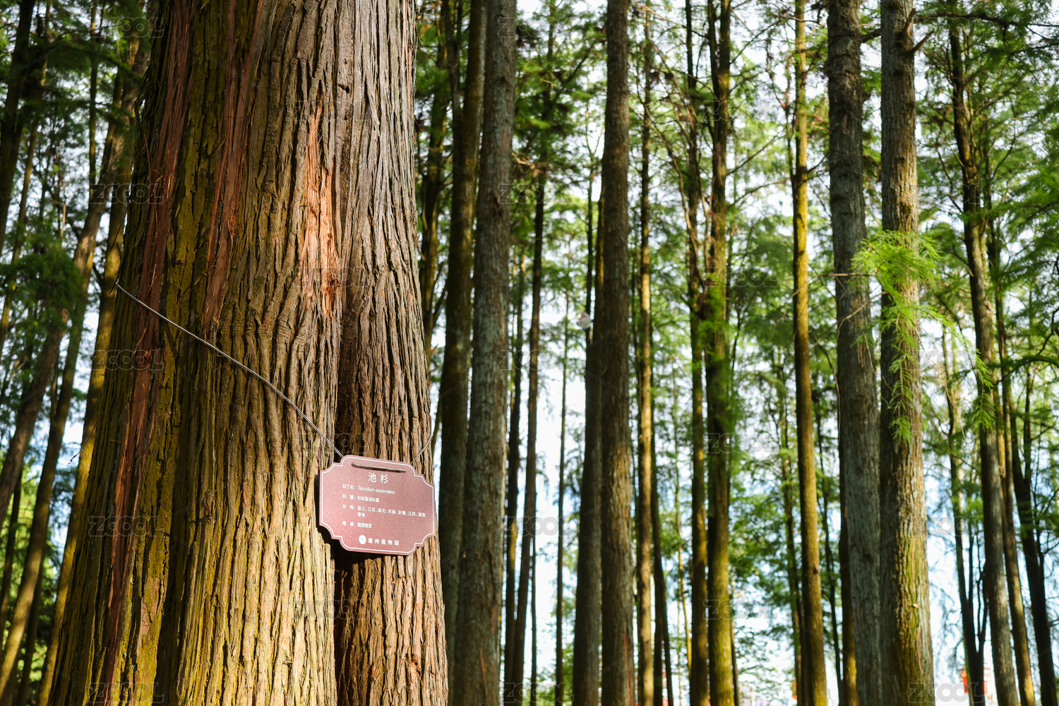 中国浙江杭州西湖畔柳浪闻莺公园阳光树林