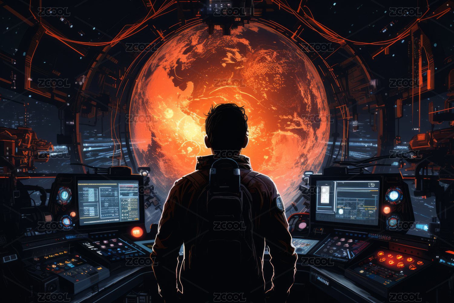 探索外太空地月空间站星球大战插画