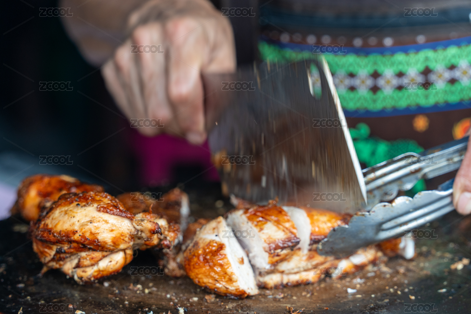搭配辣味蘸酱和新鲜香草泰式烤猪肉