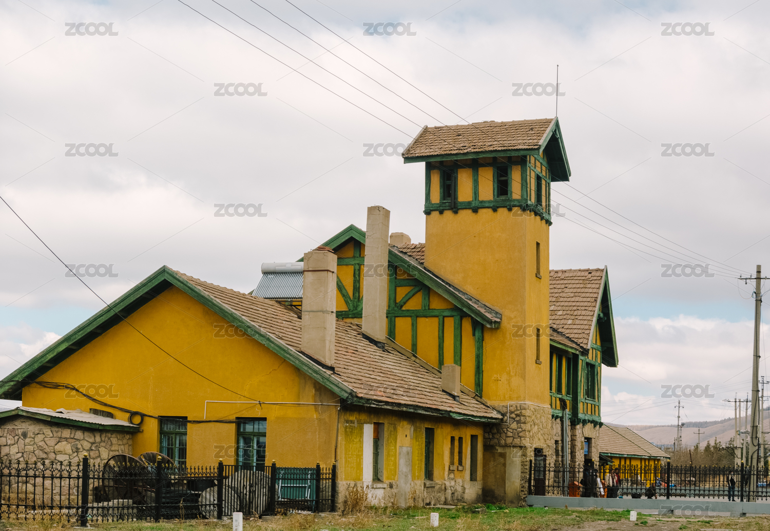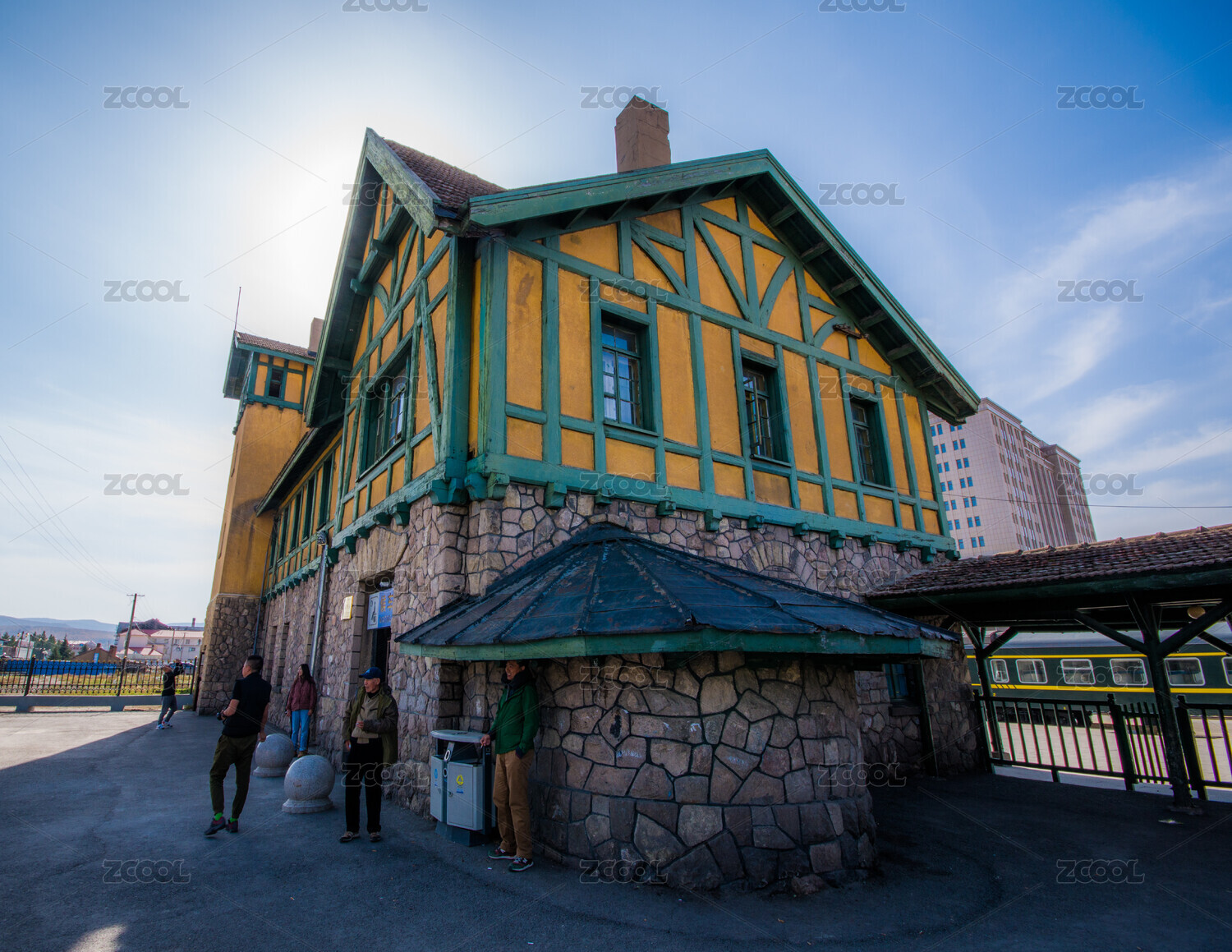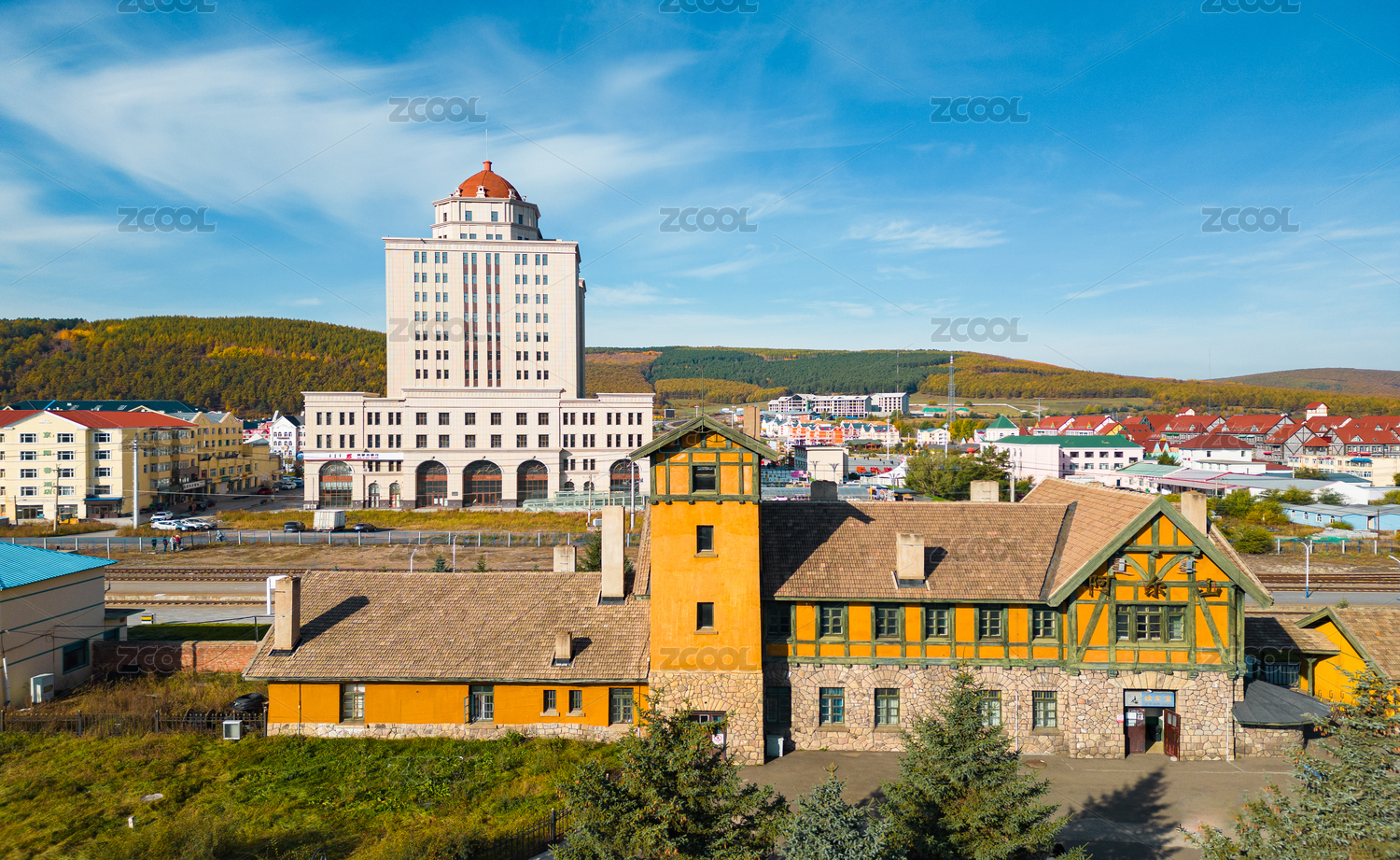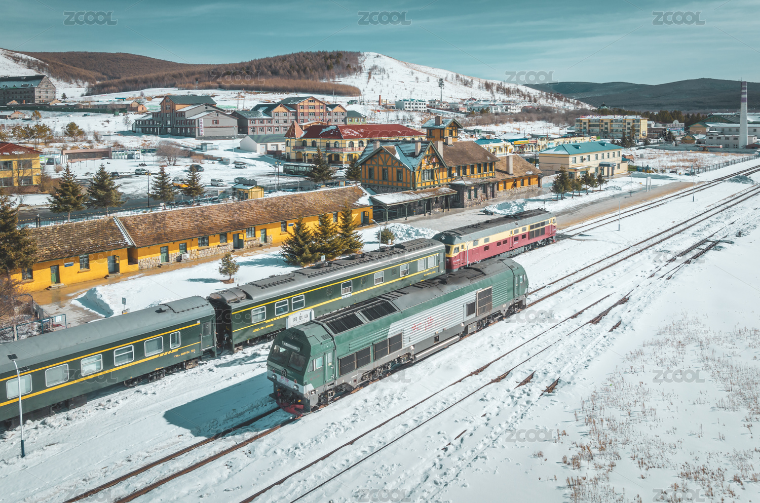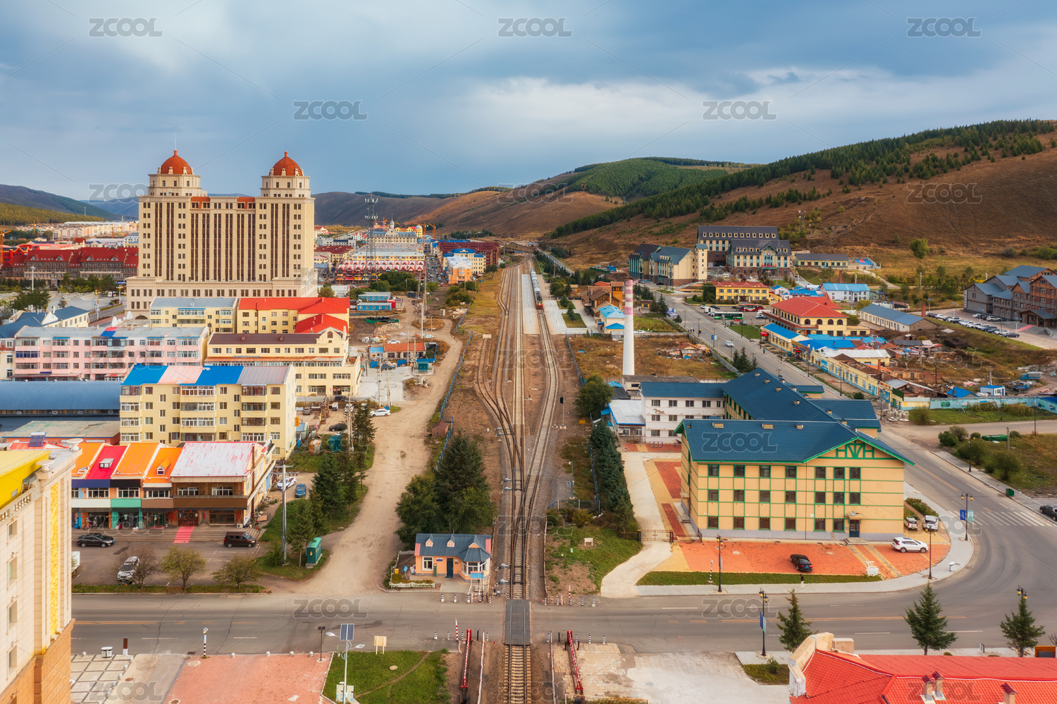 中国内蒙古兴安盟阿尔山火车站铁道平交路口航拍