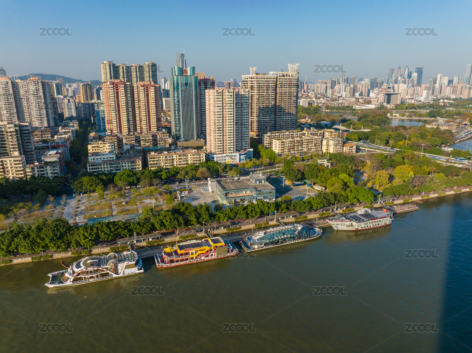 全景航拍广州大沙头码头