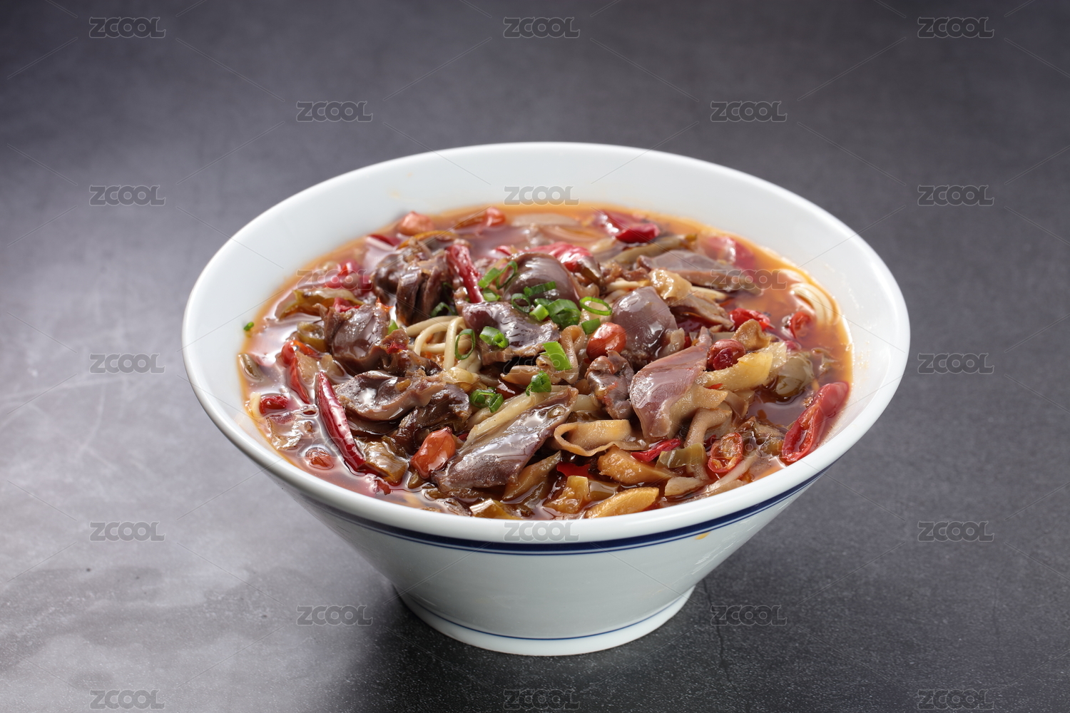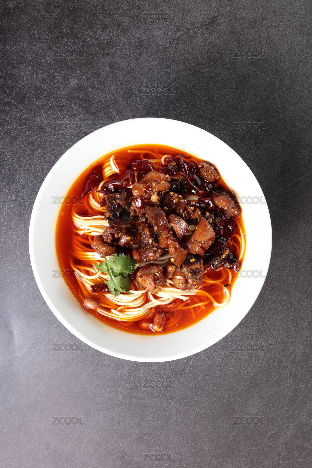 大碗里的麻辣红汤辣子鸡米线面条