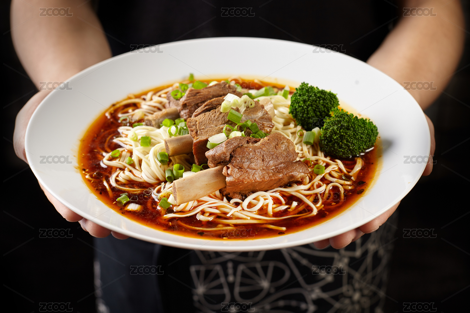 手捧一碗肉香四溢的蔬菜排骨红汤面