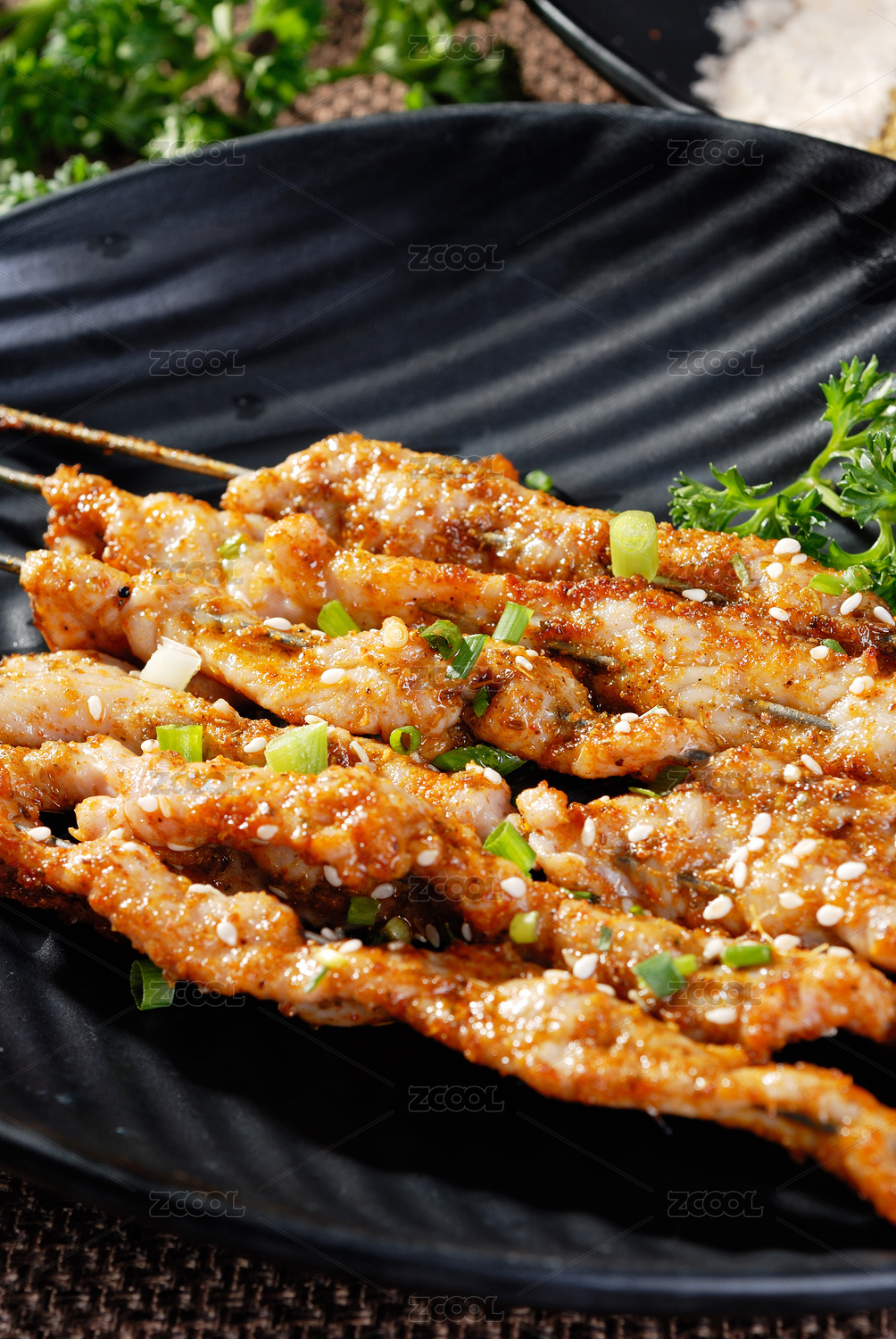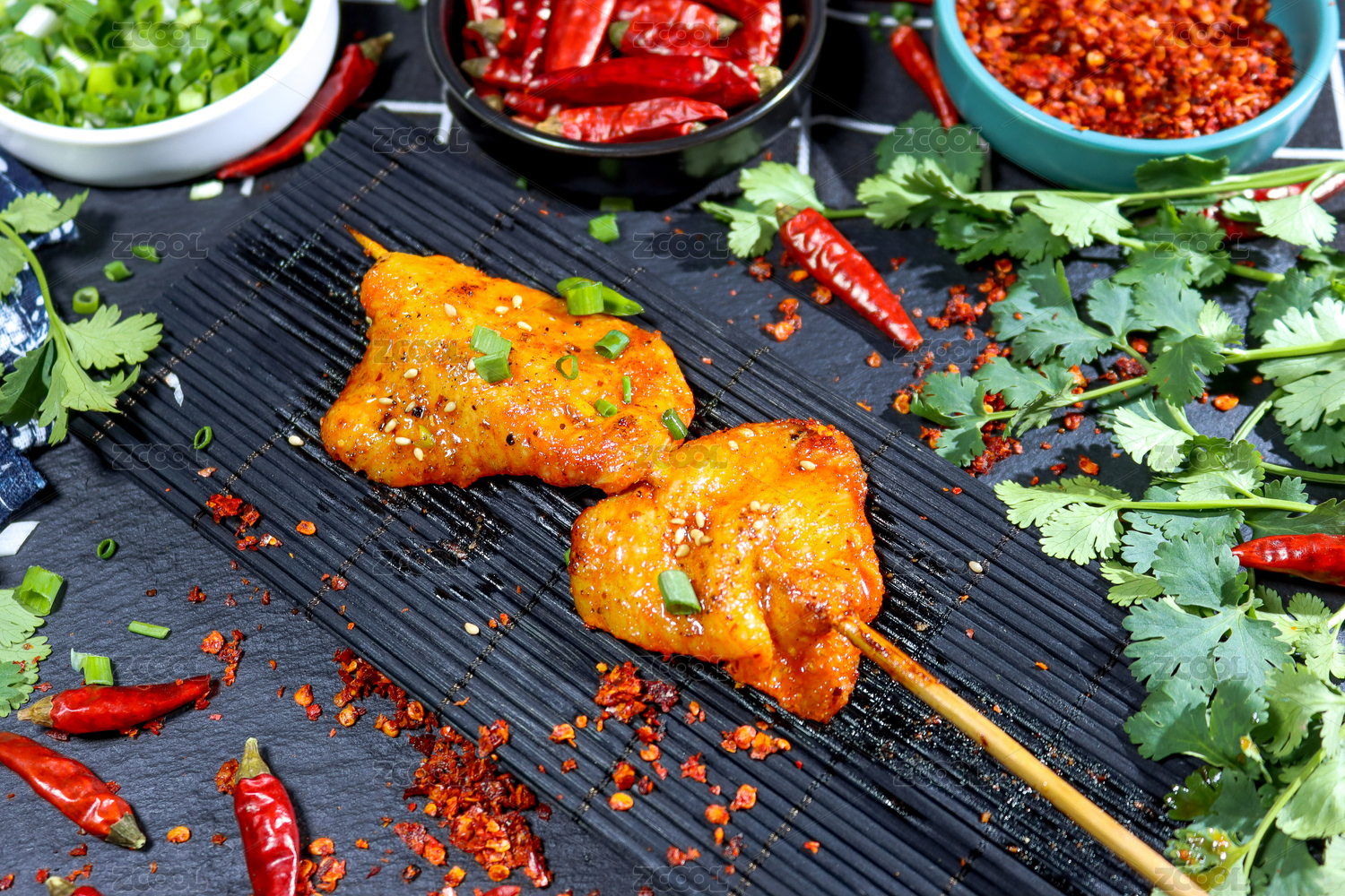 竹签串着的烧烤麻辣烤串烤里脊肉