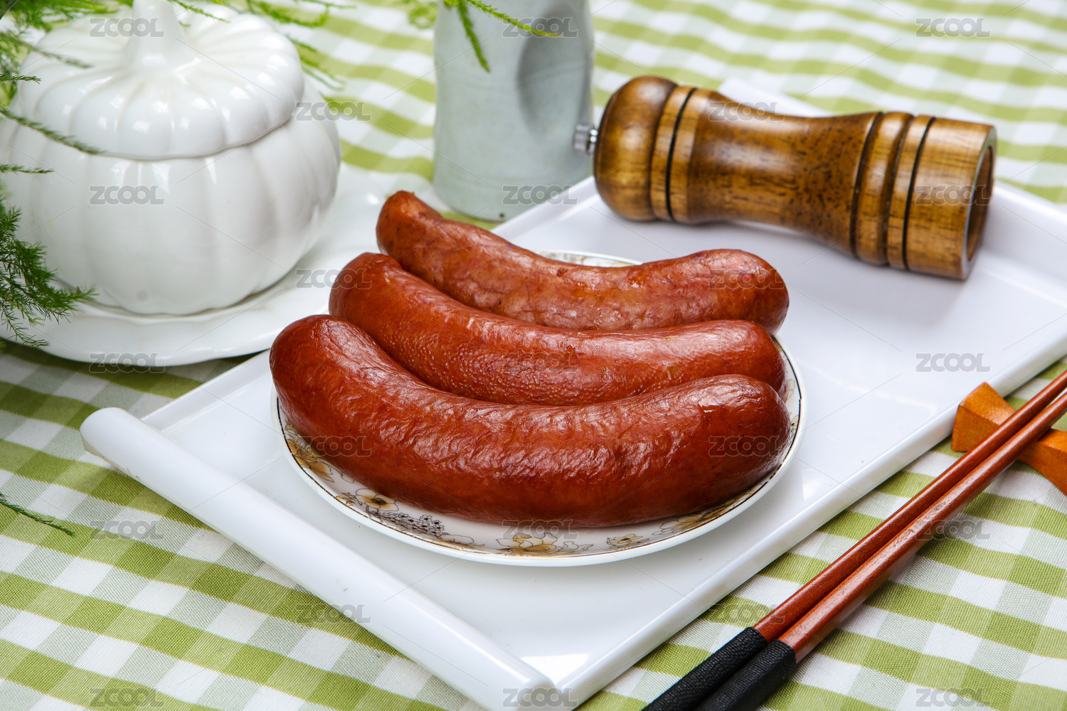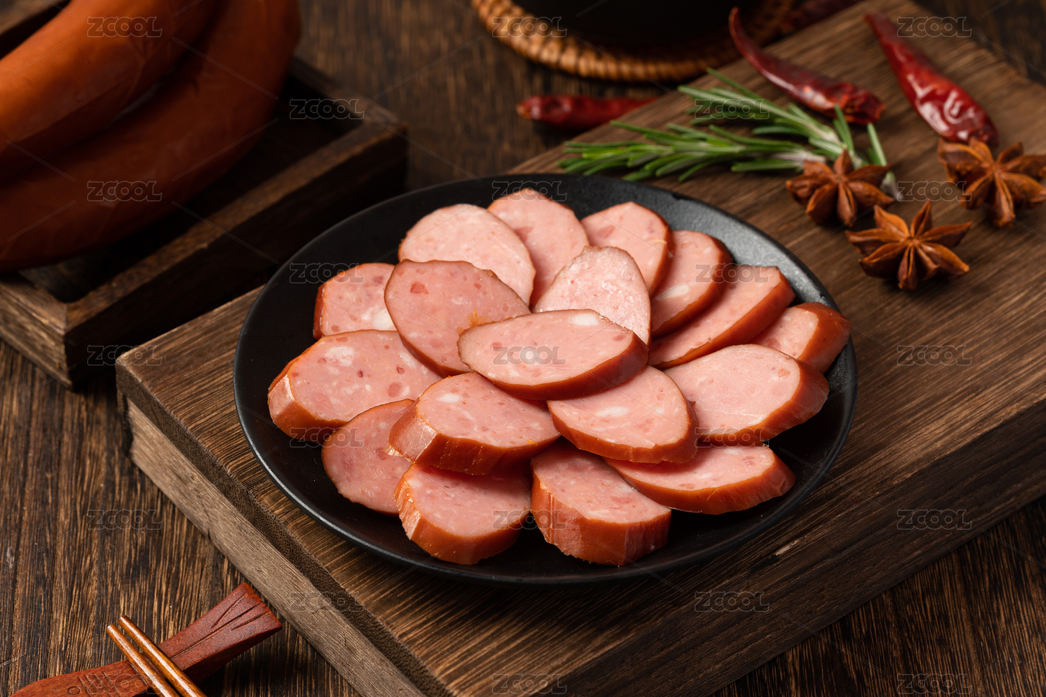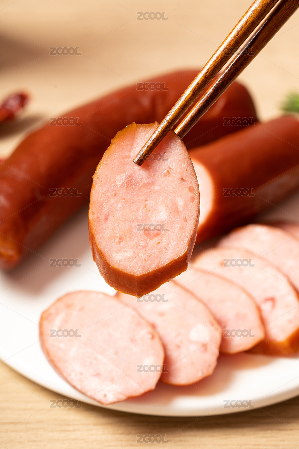 木桌上的哈尔滨红肠