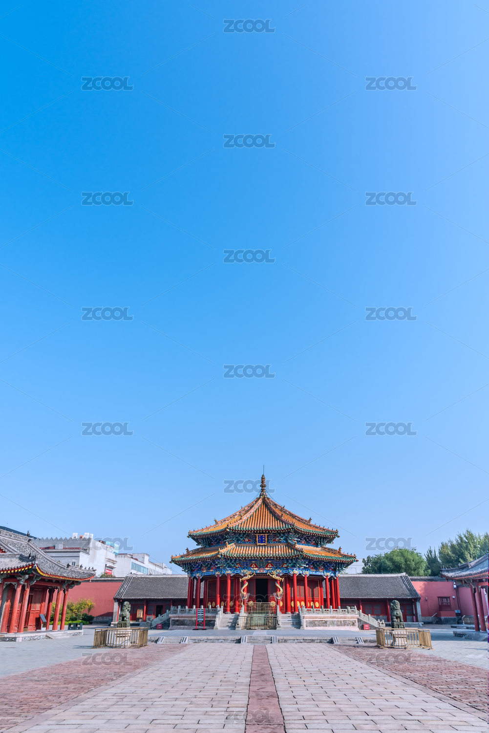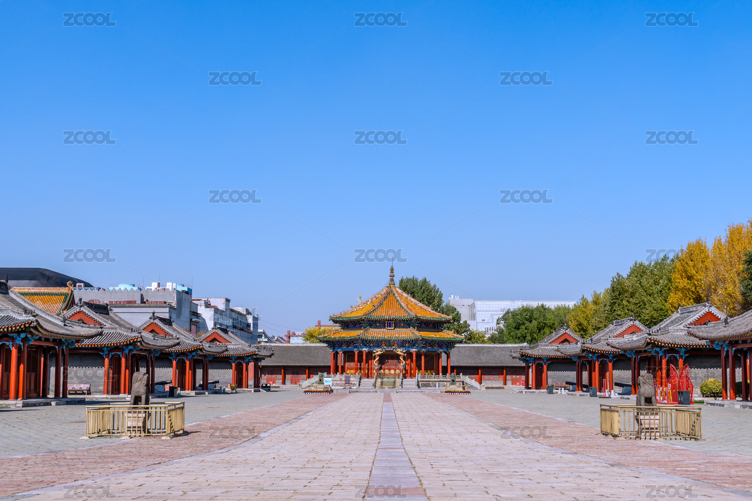 秋天中国沈阳故宫大政殿和十王亭古建筑