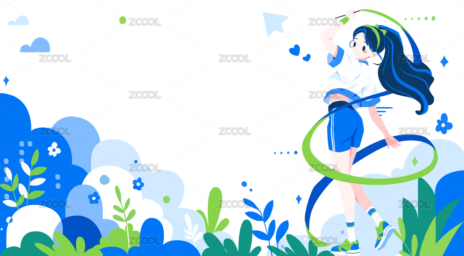 一个年轻女孩在跳艺术体操丝带舞蹈插画