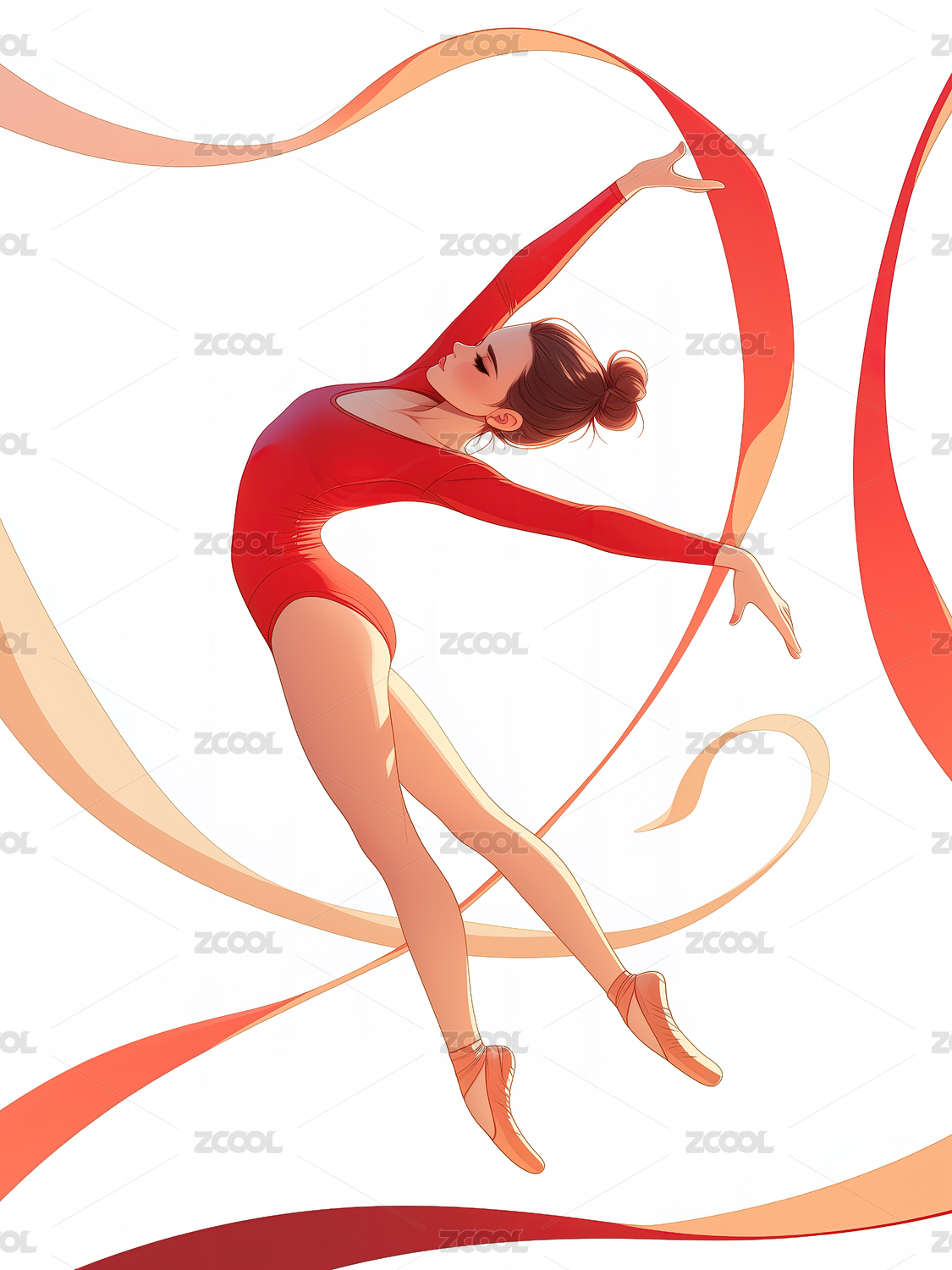 一个东方女孩在跳艺术体操丝带舞蹈插画