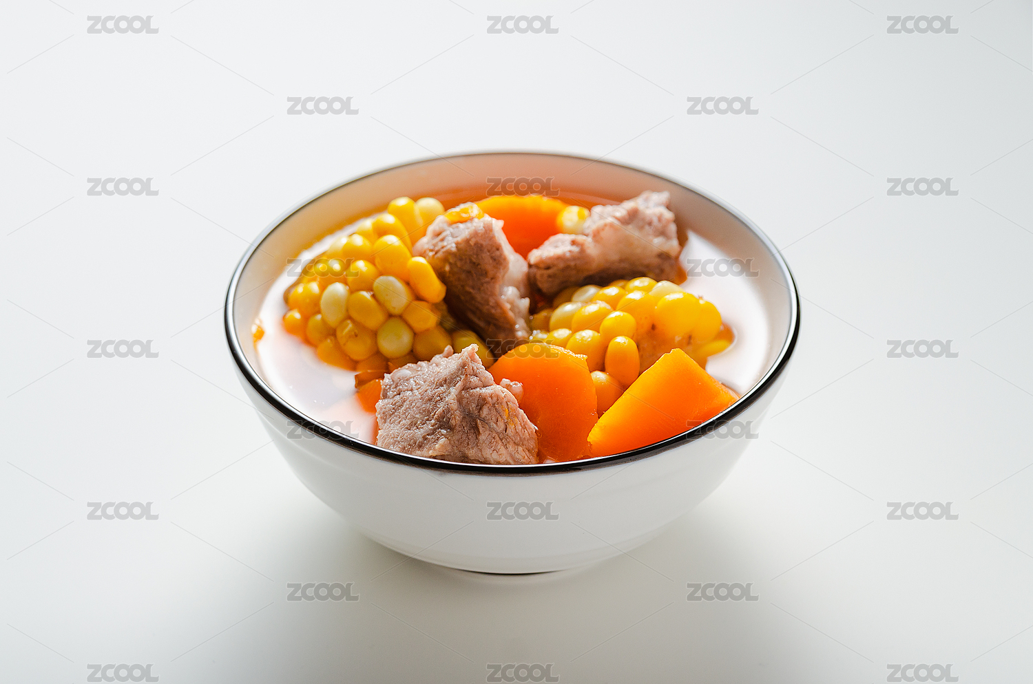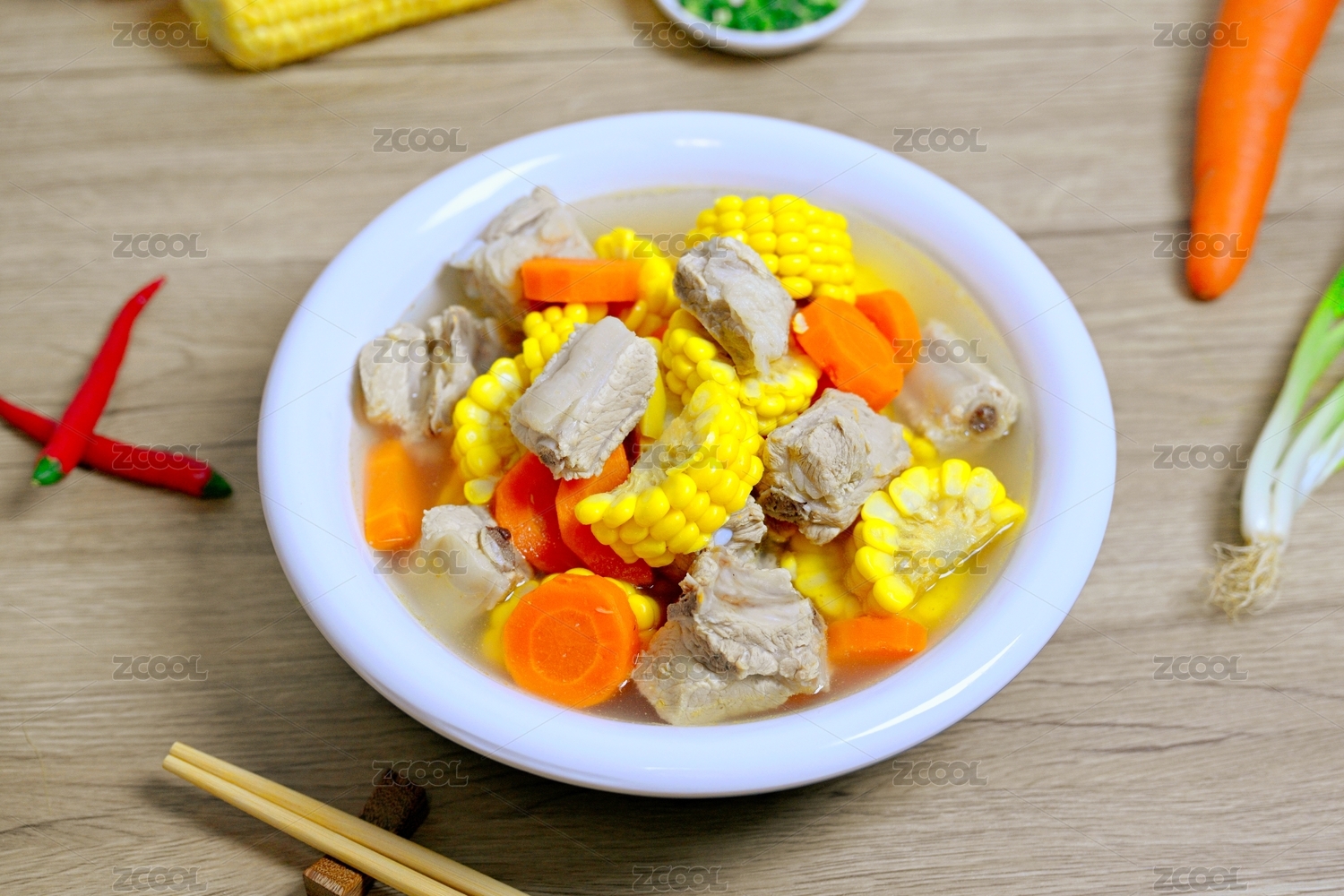 滋补养生的胡萝卜玉米猪骨汤摆在桌面上