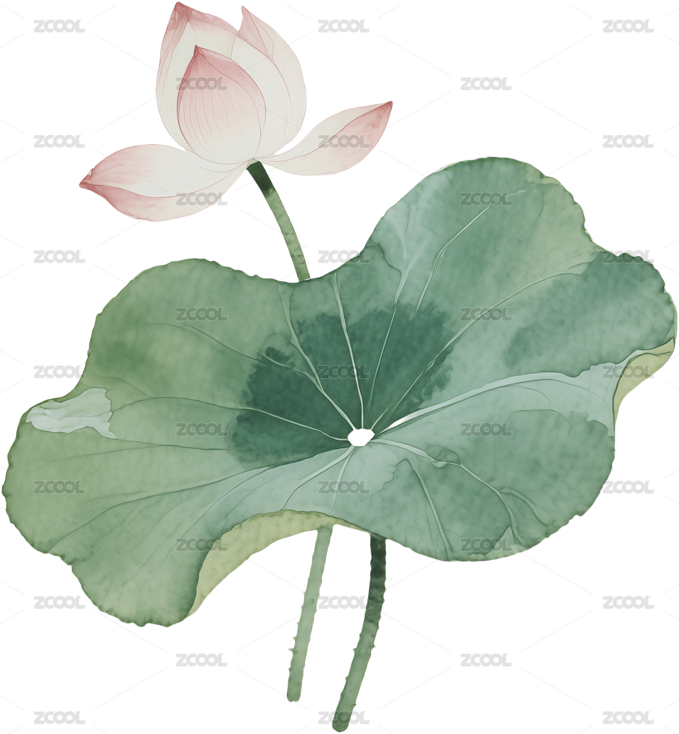 大暑免抠图-手绘荷叶