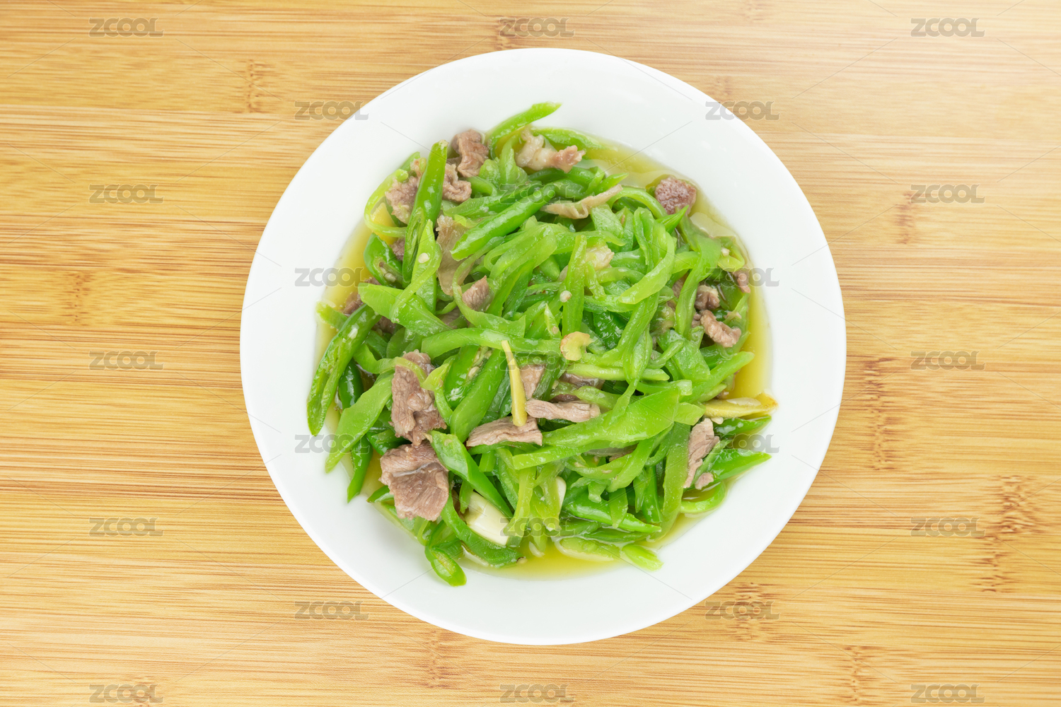白盘里的炝炒莴笋炒肉丝